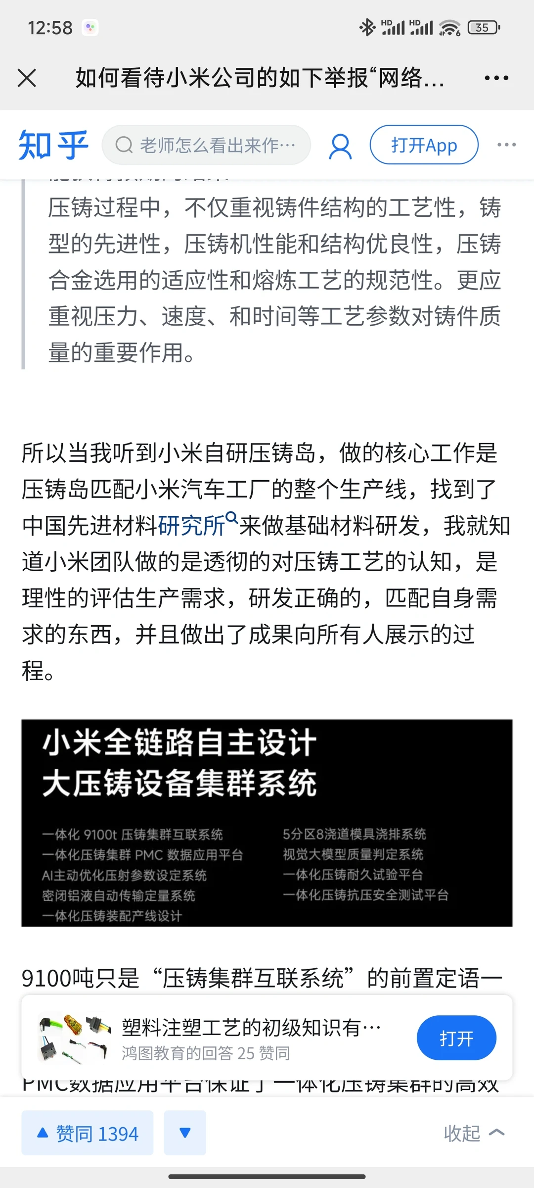 但是这个参数的调整和大压铸体系的自研,代表着整套先进压铸体系的落地,所以这条产线小米可以印上Logo,小米完全可以将这套技术去卖给其他车企,因为他们是买了别人的产线,这就是区别。