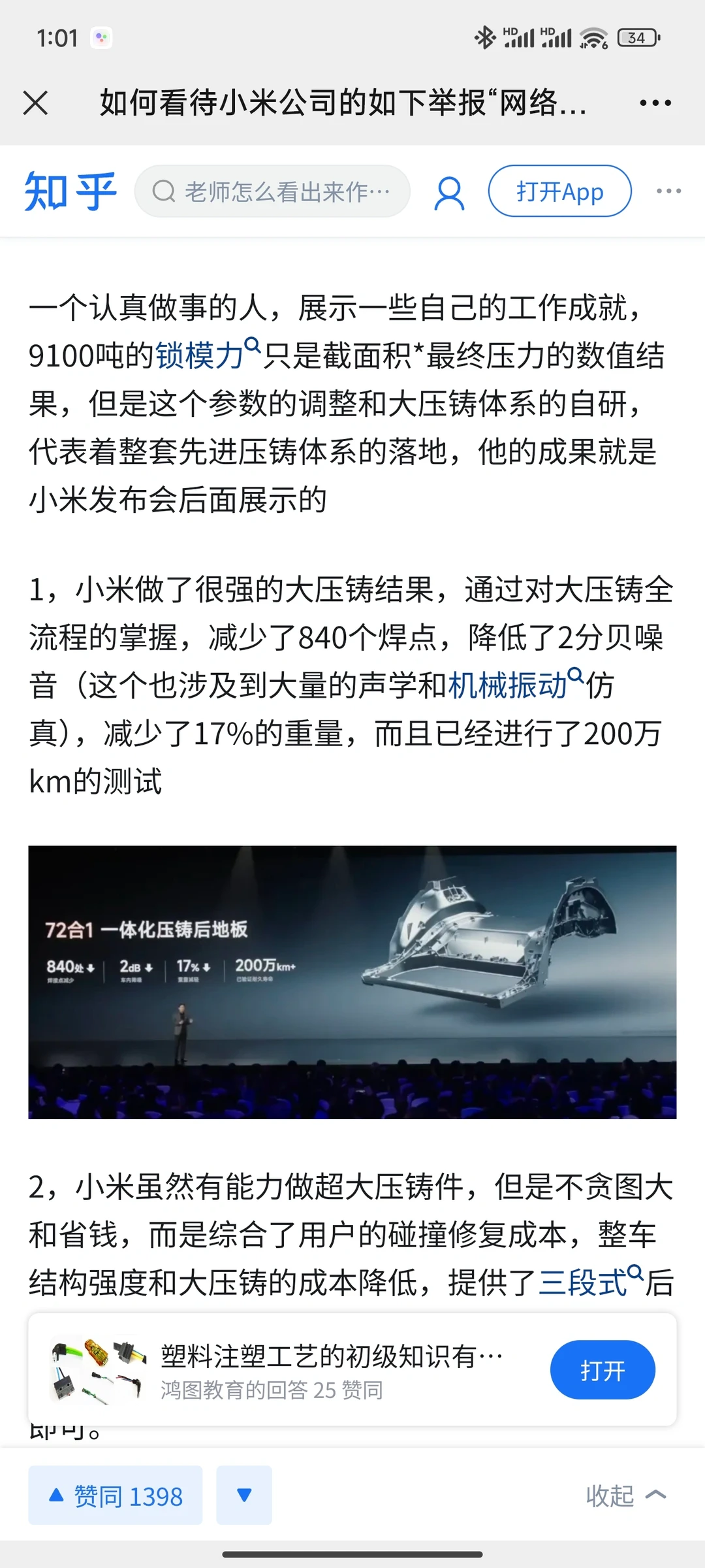 他们以为设备是8800吨就是8800吨,然后小米只是把设备功率开到最大就成了9100吨,这完全是错误的观念,9100T是锁模力,截面积×最终压力的数值结果,而这个截面积×最终压力都是小米做出来的,发布会其实也讲得很清楚,减少了840个焊点,降低了2分贝噪音,减少了17%的重量,进行了200万km的测试……