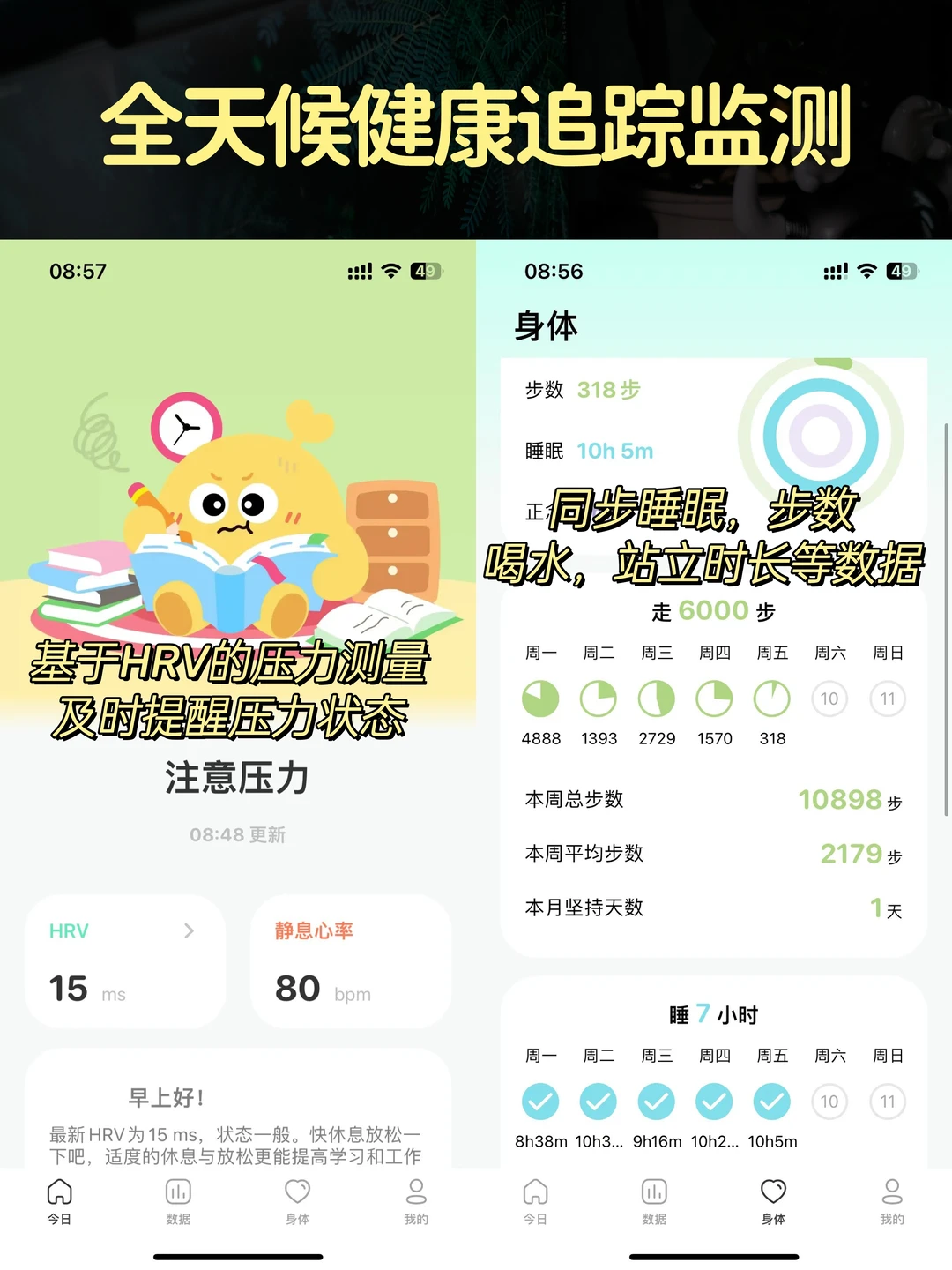 例如我用的这个白桃品牌旗下的压力自测APP,不仅能记录睡眠心率、追踪日常活动等,还能自动进行压力检测,分析焦虑行为,帮你有效管理压力!
