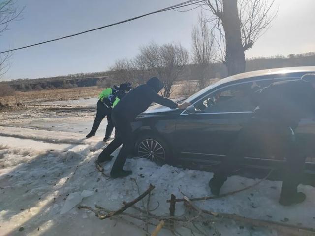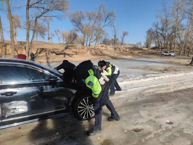 抵达现场后,民辅警发现车辆深陷结冰路面,强行拖拽存在安全风险。随即制定安全施救方案在车辆轮胎周边垫下石子和泥土,拿出随车携带的拖车绳,选择冰面相对坚实的区域固定牵引点,采取缓慢、平稳的牵引方式开展救援。经过20分钟的紧张作业,被困车辆成功被拖拽至安全路面。驾驶员对左云交警快速响应、高效救援的工作态度表示由衷感谢,激动地说:“关键时刻还是得靠交警,真是太给力了!”
