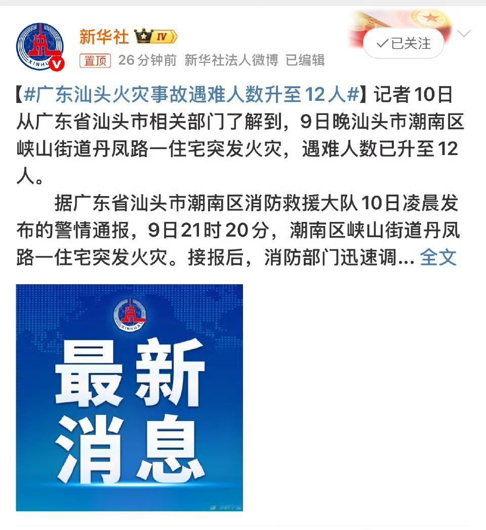 汕头火灾12人遇难!深夜噩耗揪人心,这些消防常识真的能救命!💔 刷到汕头火灾的新闻,心里揪得发慌!9号晚上九点多,潮南区峡山街道的一栋自建房突然燃起大火,短短几十分钟火光冲天,如今遇难人数已经升到12人,每一个数字背后都是一个破碎的家庭,想想都忍不住难受😭 这栋四层自建房一楼是五金店、楼上住人,典型的“三合一”户型,起火后浓烟飞快堵住逃生通道,深夜里住户根本来不及反应。消防队员拼尽全力救援,可还是没能留住12条生命,目前火灾原因还在调查,但网友们都在揪心善后和伤者的情况,更在反思身边的消防隐患。 其实火灾里最致命的不是明火,是有毒烟气!很多人遇事慌了神盲目冲楼,反而错失生机。正确做法是紧闭房门用湿毛巾堵门缝,开窗呼救等救援,这些常识看着简单,关键时候能保命! 家里的电气线路要定期查,楼道别堆杂物,消防器材不能少,安全从来不是小事。 愿逝者安息,伤者早日康复🙏 你们家里都会定期排查消防隐患吗?平时有没有备灭火器、烟雾报警器?评论区聊聊你的消防小妙招,一起为安全转发提醒身边人! 广东汕头火灾最新进展 自建房消防安全 消防常识记心间