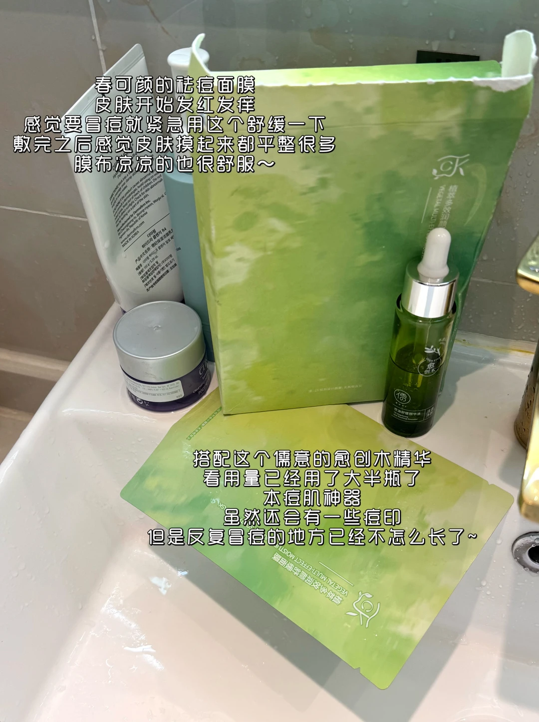 直到挖到儒意愈创木精华液,效果真的有惊艳我 !质地像水一样清透,拍开几秒就吸收,完全不黏糊,油痘肌用也没一点负担。后来我又搭配了春可颜祛痘舒缓面膜一起用,修护效果直接 buff 叠满!而且这款面膜精华多到离谱,敷完脸还能顺带涂脖子,肤感又软又温和,就算是敏皮用着也没压力。