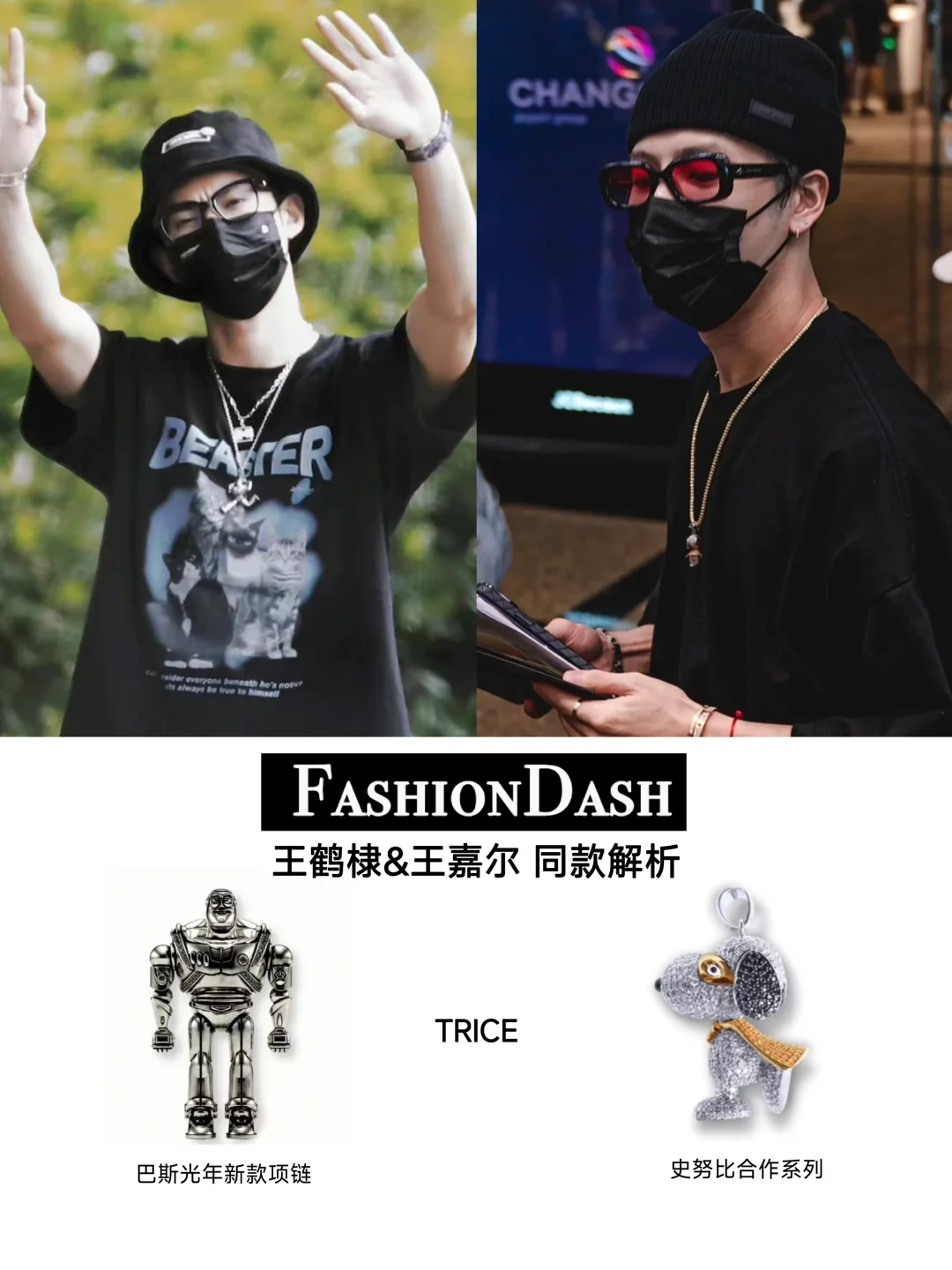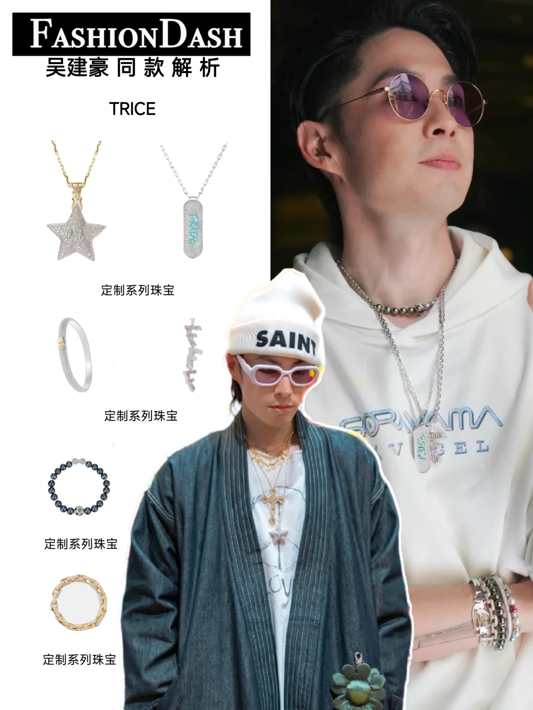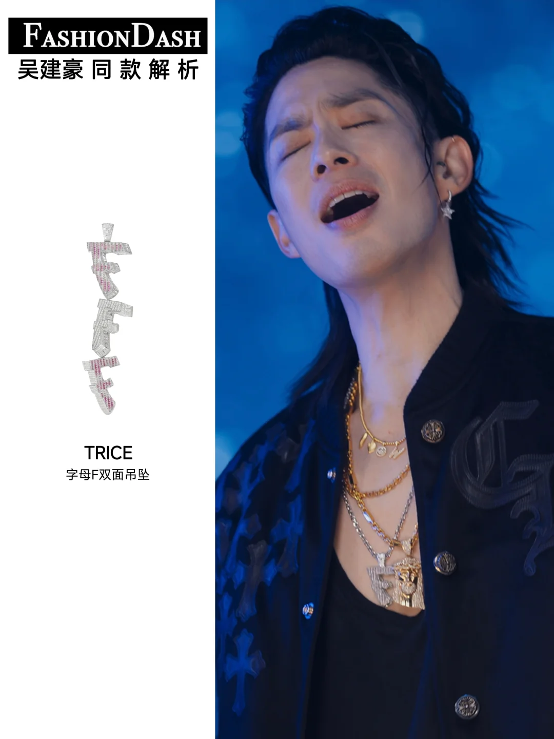• 之前吴建豪也戴过TRICE定制系列,星星吊坠+叠戴项链,和他的穿搭一配,艺术感直接拉满;