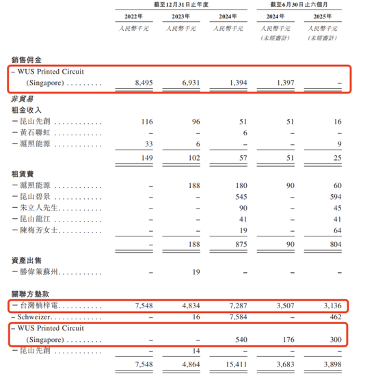 还需指出的是,沪电股份和台湾楠梓电之间还存在频繁的资金拆借和代垫款项。截至2025年6月末,沪电股份向台湾楠梓电和WUSSingapore的关联方垫款合计余额为343.6万元。