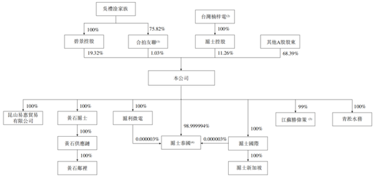 招股书显示,吴礼淦家族成员包括陈梅芳及其子吴传彬、吴传林,女儿吴晓杉,儿媳邓文澜、朱雨洁,女婿胡诏棠共7人;合拍友联则由吴礼淦家族及一名独立第三方分别持股75.82%、24.18%。此外,自2009年后,吴礼淦家族不再控制台湾楠梓电。