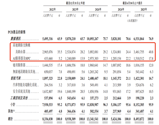 这两大业务的猛涨成为沪电股份收入攀升的中坚力量,使公司总收入由不到百亿迅速突破130亿元。2024年及2025年上半年,高速网络交换机及路由器的收入同比分别增加13.67亿元及21.38亿元,增速分别高达54.14%及161.48%;同期,AI服务器及HPC的收入同比分别增加17.35亿元和3.05亿元,增幅为139.93%和25.34%。