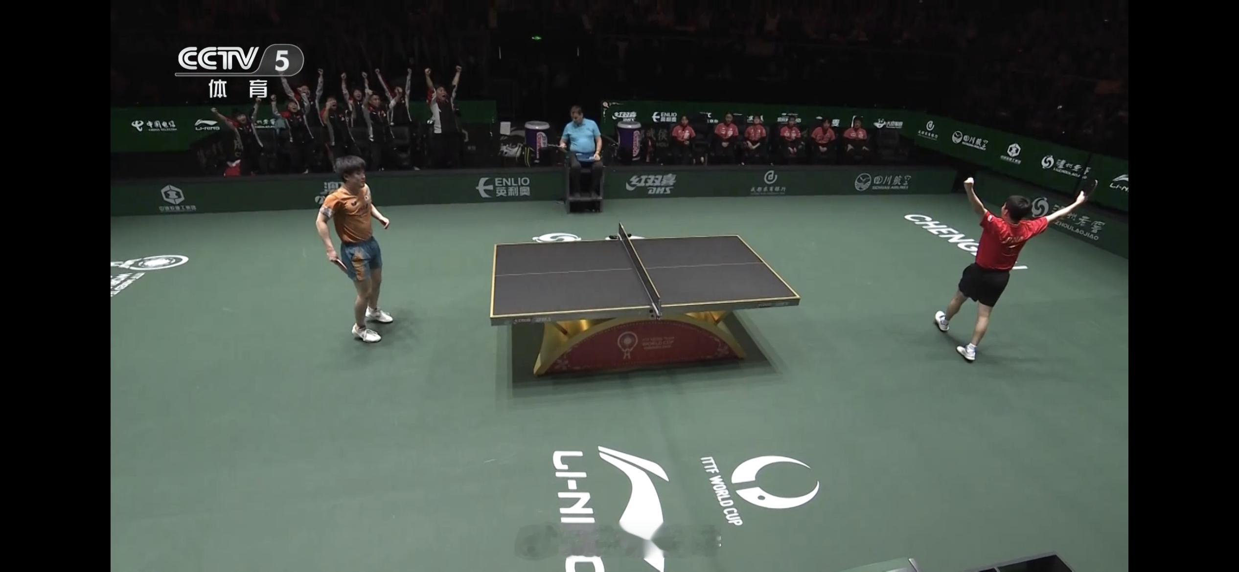 面对负多胜少的张本智和,打出血性,为中国队完美收官8:1横扫日本队,问鼎