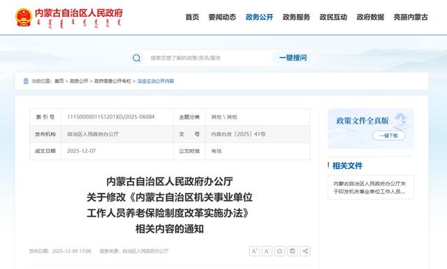 相关文件:内蒙古自治区人民政府办公厅关于印发机关事业单位工作人员养老保险制度改革实施办法的通知