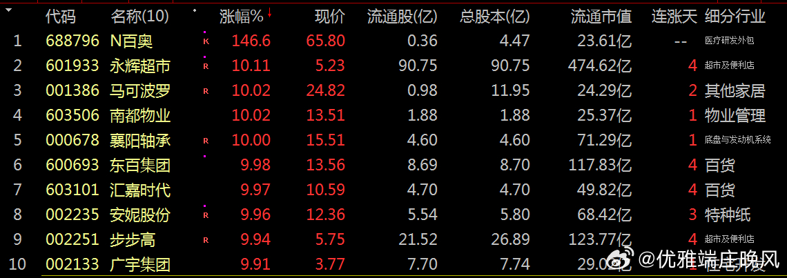 【财富晚茶】主力资金(12.10):追寻沪深北三市主力流入前10股票导语:作者系《网易号》优质财经领域创作者。曾经原创作者和知名网易号旅游领域创作者。大跨度行业等的写作,颇受网友喜爱。作品发表于2025.12.10.18:18 优雅端庄晚风。编者的话:追寻盘面:根据2025年12月10日市场数据:主力资金:流入前10股票:按流入金额从高到低排列。今天主题是:【财富晚茶】主力资金(12.10):追寻沪深北三市主力流入前10股票。与全国投资者和粉丝友友一起分享,殷切期待投资者精彩点评建议问题。最新市场:新鲜出炉:2025.12.10.18:18主力资金股票参考。涨跌个股:偏重其中:沪深北证、主力占比、今日排名等。资金板块:排名前三:医疗、超市、家具等领域。一、主力资金:市场前三名佳股票688796 N百奥601933 永辉超市001386 马可波罗二、主力资金:流入前10名的股票最新K线图统计:即时日期:2025.12.10.18:18688796 N百奥 601933 永辉超市 001386 马可波罗 603506 南都物业000678 襄阳轴承 600693 东百集团 603101 汇嘉时代 002235 安妮股份002251 步步高 002133 广宇集团追寻盘面:根据2025年12月10日市场数据:主力资金:流入前10股票:按流入金额从高到低排列:三、今主旋律:前10名市场表现股最新K线图统计:即时日期:2025.12.10.18:18四、 创作不易:优质网易财经作者投资投机迷茫之中:给予尽可能有帮助:资本市场风险自负。(优雅端庄晚风《网易号》财经领域创作者和原创作者 违者必究)