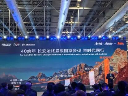 “1981年,长安的前辈们自筹3500万元,进入汽车领域,从1984年中国第一辆微车下线,我们用30年突破1000万辆,又用7年累计突破了2000万辆,再用4年半就达成3000万辆。40余年的时间,我们搭乘发展的加速度,始终紧跟国家步伐,与时代同行。”朱华荣说。