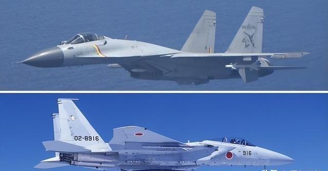 琉球上空的较量!中国海军的歼15T战斗机用机载测距雷达照射日本F15战机,被激光