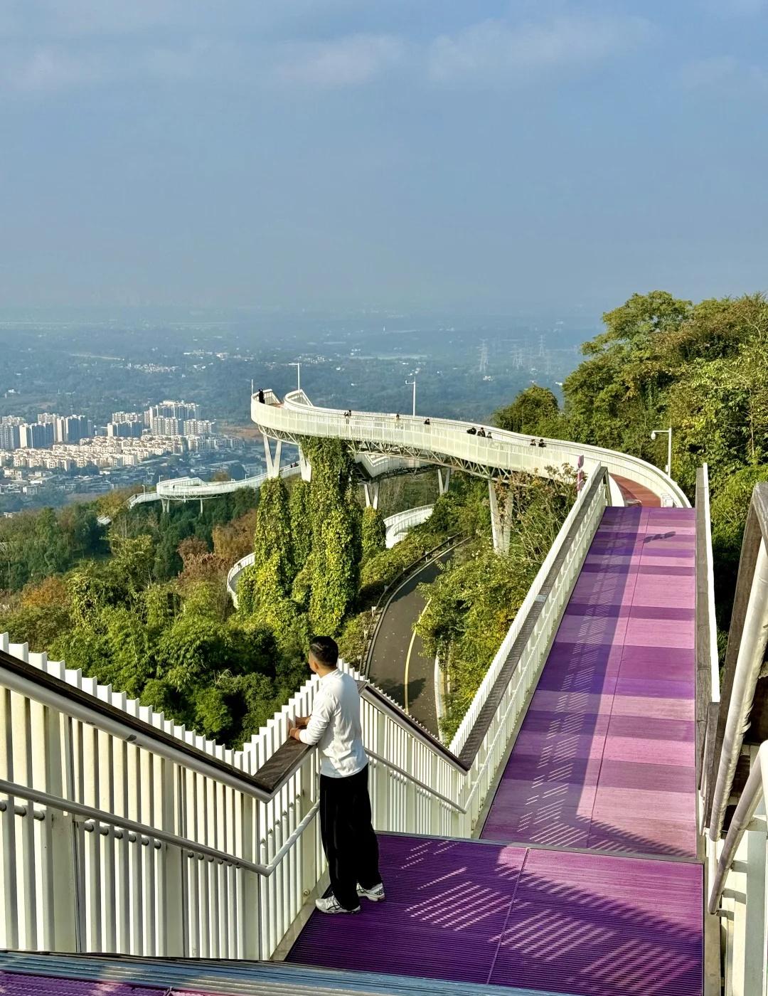 城市里最美☁️高空徒步路线!重点是免费🆓 冬日阳光可别只想着晒太阳🌞 这条超美的入门级徒步路线~ 值得一家老少一同领略 从山脚徒步山顶⛰️ 仿佛步步高升直至云端☁️ 全长3km,往返6km,登上山顶可俯瞰成都市区 📍龙泉山森林绿道高空栈道(狮子堡观景台) 🎫:不要门票,山下停车也免费❗ 🚇:1号线广福站A2口出/6号线昌公堰C口出,转T32路天灯小区站下 🚗自驾更方便!从市区出发仅需40min ✅有3种徒步线路可供选择: 1️⃣山脚出发:导航(龙泉山森林绿道高空栈道遇见广场),徒步2h到山顶 2️⃣半山腰出发:导航(龙泉山城市森林公园天府新区合江景区),徒步20min到山顶 3️⃣山顶停车场:导航(丹景山狮子堡观景台),只有短短几百米的徒步栈道 🌟Tips 1️⃣上山一路上都有自动贩卖机,还有小吃摊 2️⃣栈道基本全部暴露在太阳下,一定做好防晒措施 3️⃣从山脚往上走很大一段没有卫生间,一定要解决好了再出发 成都周末遛娃 成都亲子游 成都遛娃 龙泉山徒步 龙泉山高空栈道 值得N刷的宝藏出游地 城市的一百种玩法 不出远门去徒步 成都周边游 成都遛娃 成都亲子游 登高望远好去处 登高望远风景美 城市轻徒步 轻松徒步路线 打卡绝美机位 城市风景线