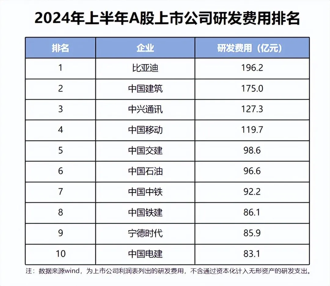 在A股上市的5300多家企业中,2024年上半年比亚迪研发投入排第一名,在过去的14年中,比亚迪的研发费都是高于净利润的,也就是不想着“存钱”,只想着“投钱”。