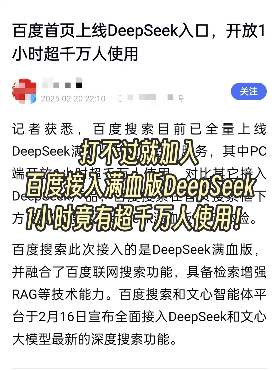 据说百度上线满血版DeepSeek仅1个小时就有超过千万人用,你用了吗?对此你怎么看?