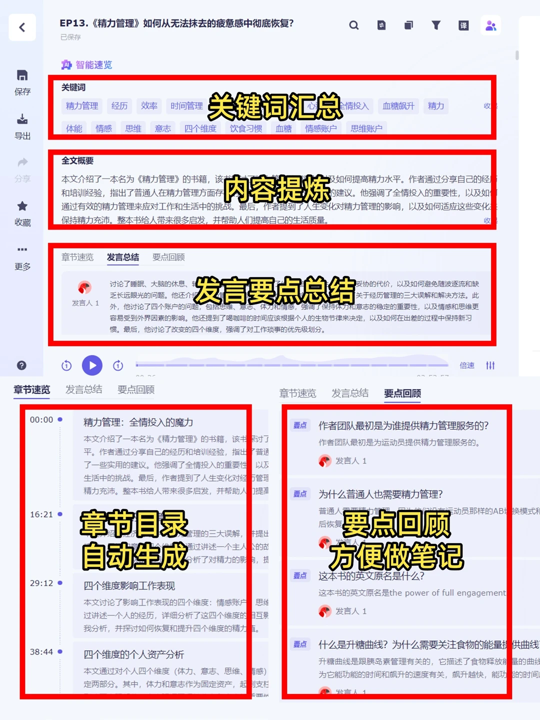 👉通义听悟还能自动提取重点内容,比如录音中的精彩片段、金句名言、总结句等等,简直不要太方便!