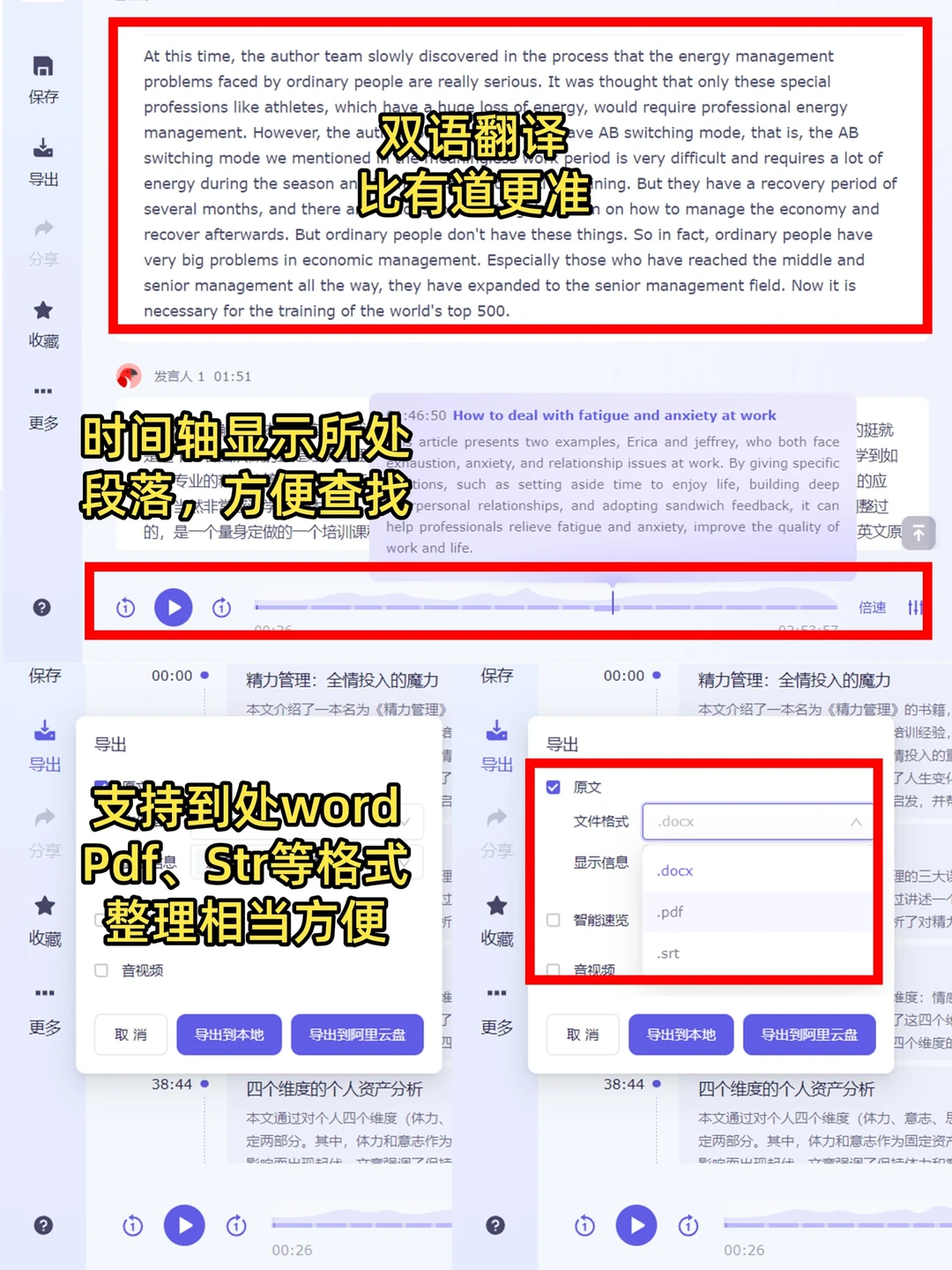 👉飞书妙记很多宝子不知道怎么使用,而通义听悟在操作上更简单,官网、小程序直接就能用,还支持导出pdf、word等主流格式!
