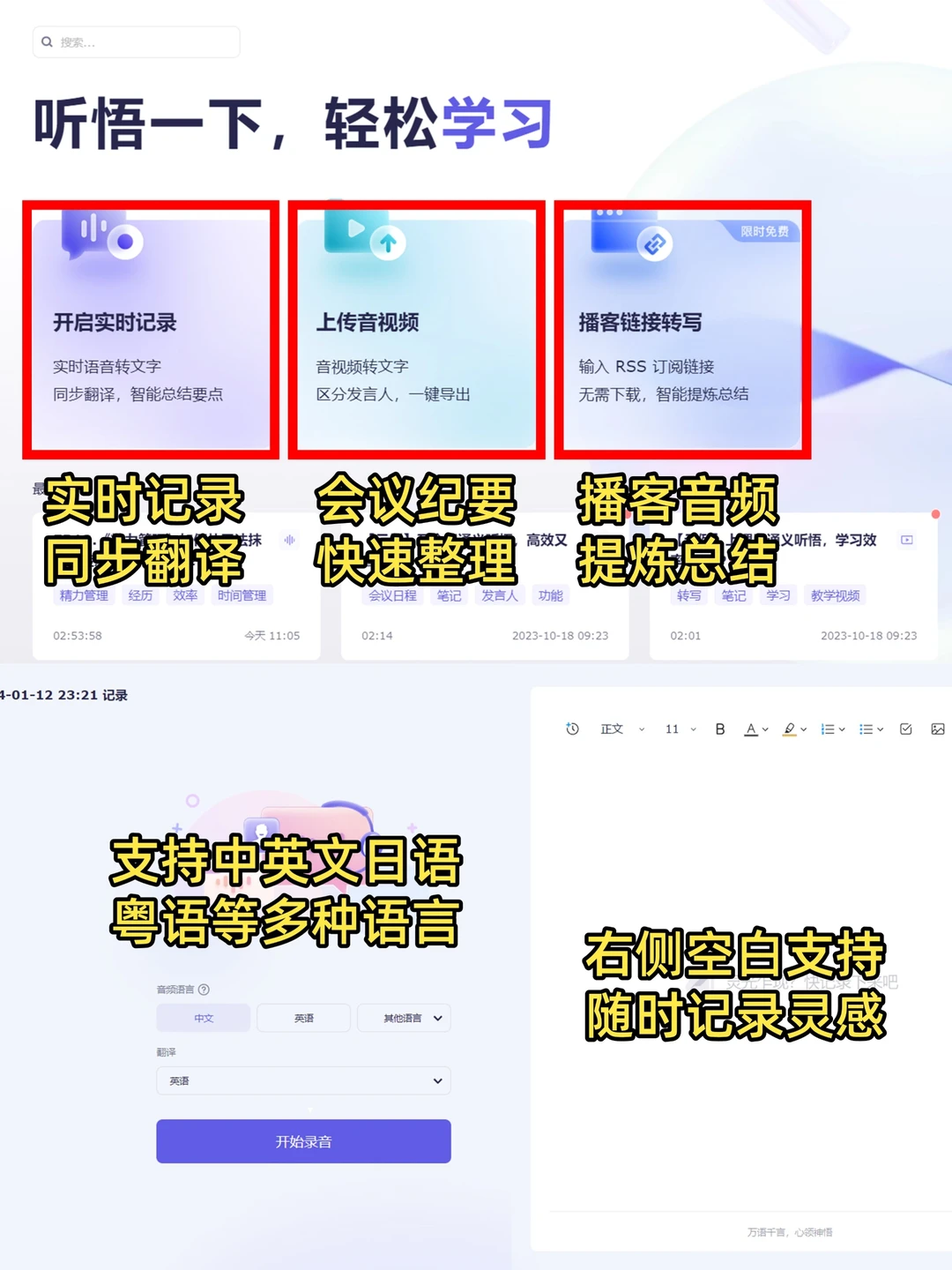 总之,只要是语音需要转文字的,都可以用得上通义听悟,不用花💰,功能强大,真的可以尽情冲!