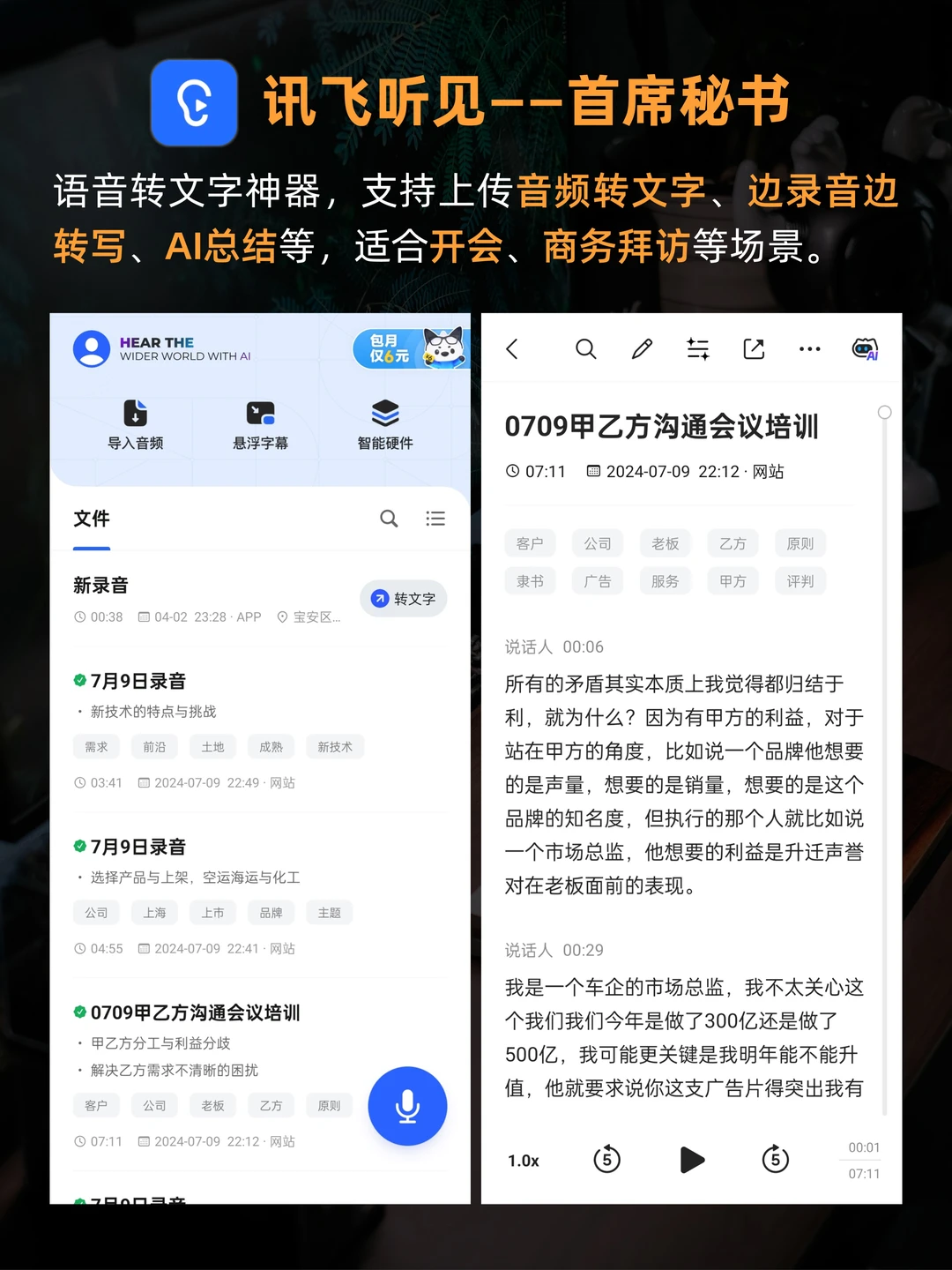 语音转文字软件,辅助AI智能总结音频内容,会议、商务拜访中超实用。