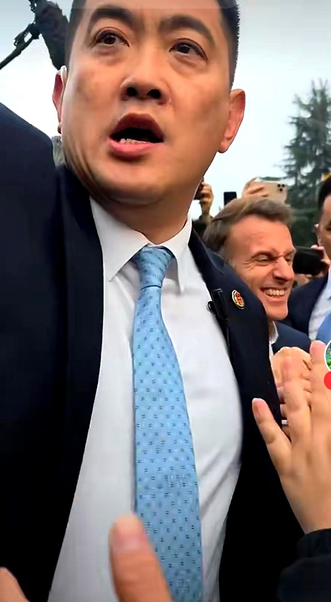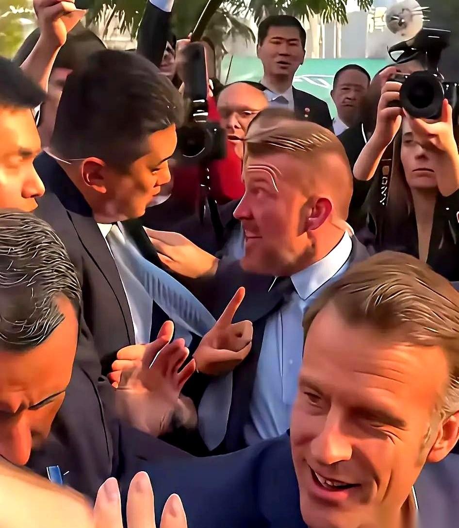 法国保镖上手去扯咱们中方安保的衣服。 电光火石的一瞬间。 咱们那哥们儿,眼皮都没抬一下,一个眼神递过去,一个不着痕迹的格挡手势,直接把对方的动作给“化”掉了。 全程,连表情都没变。 就一个字,稳。 你看那个法国哥们儿,全身肌肉都绷着,写满了“别靠近我老板”的紧张和外放。 再看我们这位,看似松弛,但每根神经都像雷达一样张开,那是一种绝对掌控局面的松弛感。 核心是绷紧的,但姿态是舒展的。 这几年在国外,见多了各种咋咋呼呼的所谓“精英”,但真正的高手,都是这个样。 话不多,事儿办得漂亮。情绪稳定得像一块千年寒冰,但你知道,冰下面是火山。 你说什么是帅? 脸蛋子那都是最浅的。 真正的帅,是一种气场,一种“这事儿我心里有数,你甭慌”的定力。 是一种不动声色,就能让你感到绝对可靠的专业。 说白了,这就叫藏在骨子里的自信。 真的,刷到这一幕,心里就一个感觉: 踏实。安心。 我们的人,现在就是这个范儿。