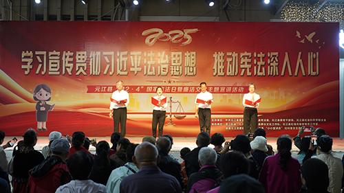 12月3日晚,在国家宪法日来临之际,元江县紧扣法治宣传主题,开展了一场别开生面的主题宣讲晚会。《法治元江歌声扬》《萌娃说宪法》等形式多样的快板、歌舞和小品轮番上演,每个节目均紧扣宪法精神与廉洁文化内核,巧妙融入了移风易俗、优良家风传承、防范电信网络诈骗等时代主题。精彩纷呈的表演赢得了现场观众阵阵掌声与喝彩,法治观念如春风化雨般深入人心。