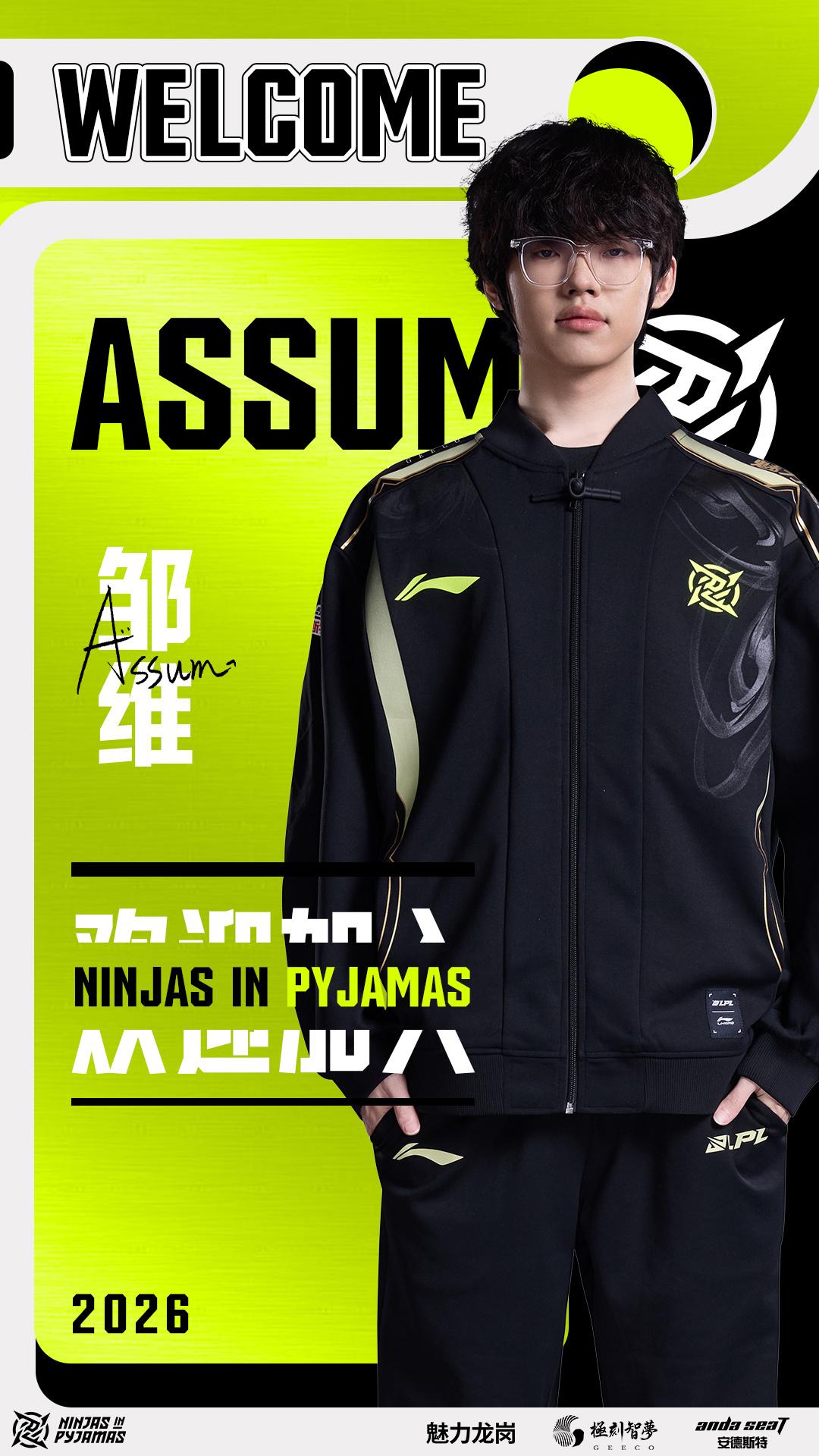 经过双方的友好协商,我们很高兴地向大家宣布:AD选手邹维(ID:Assum)与深圳NIP电子竞技俱乐部达成协议,正式加入战队并一起迈向新赛季的征程。