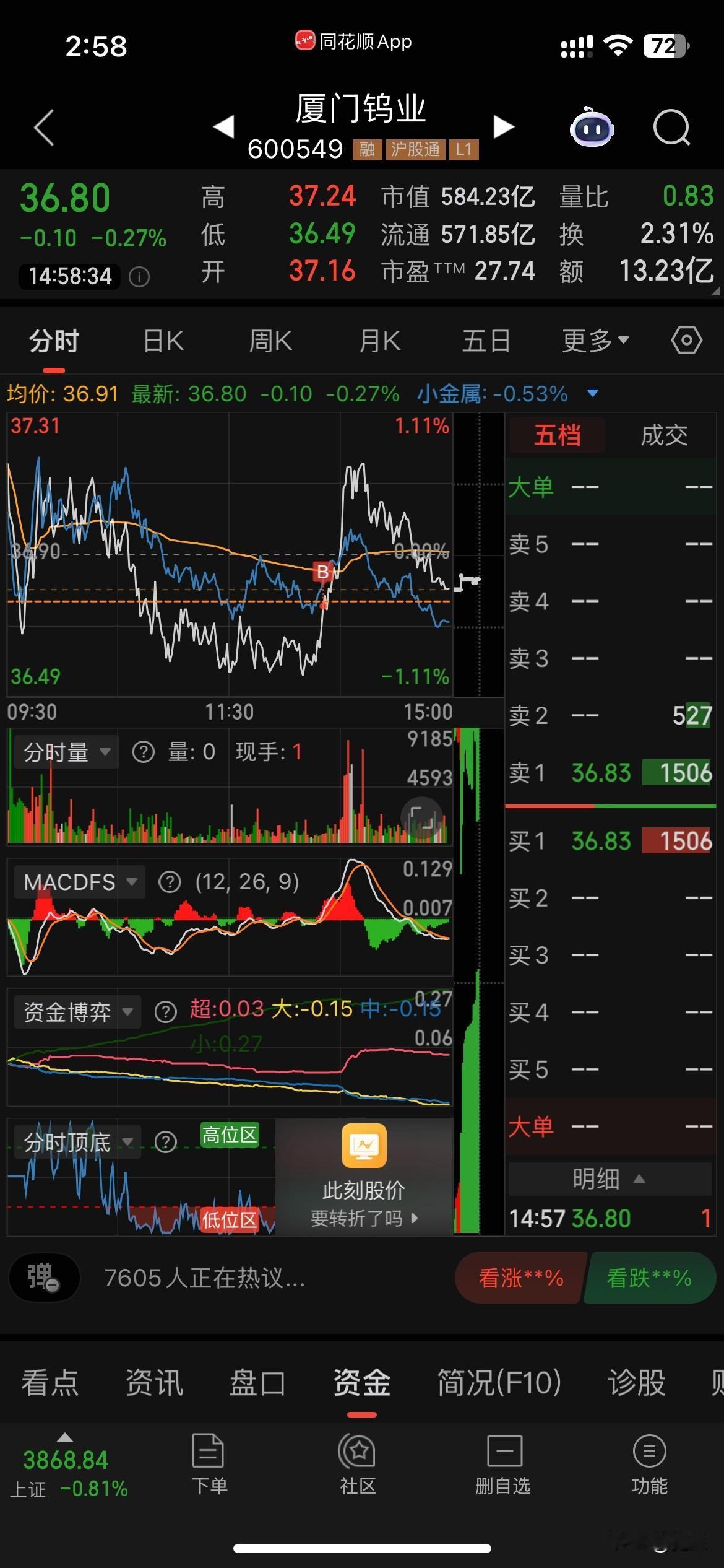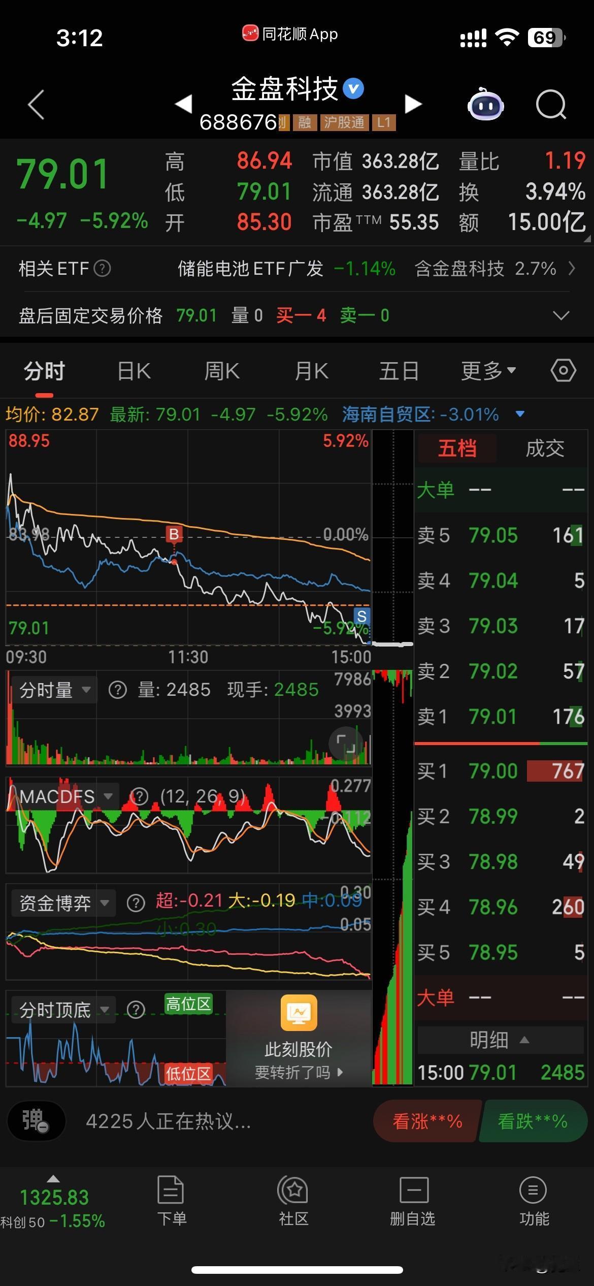 大盘下午继续杀,我的金盘跌惨了,为了控制风险,尾盘把加仓的卖掉了。今天下午出击了