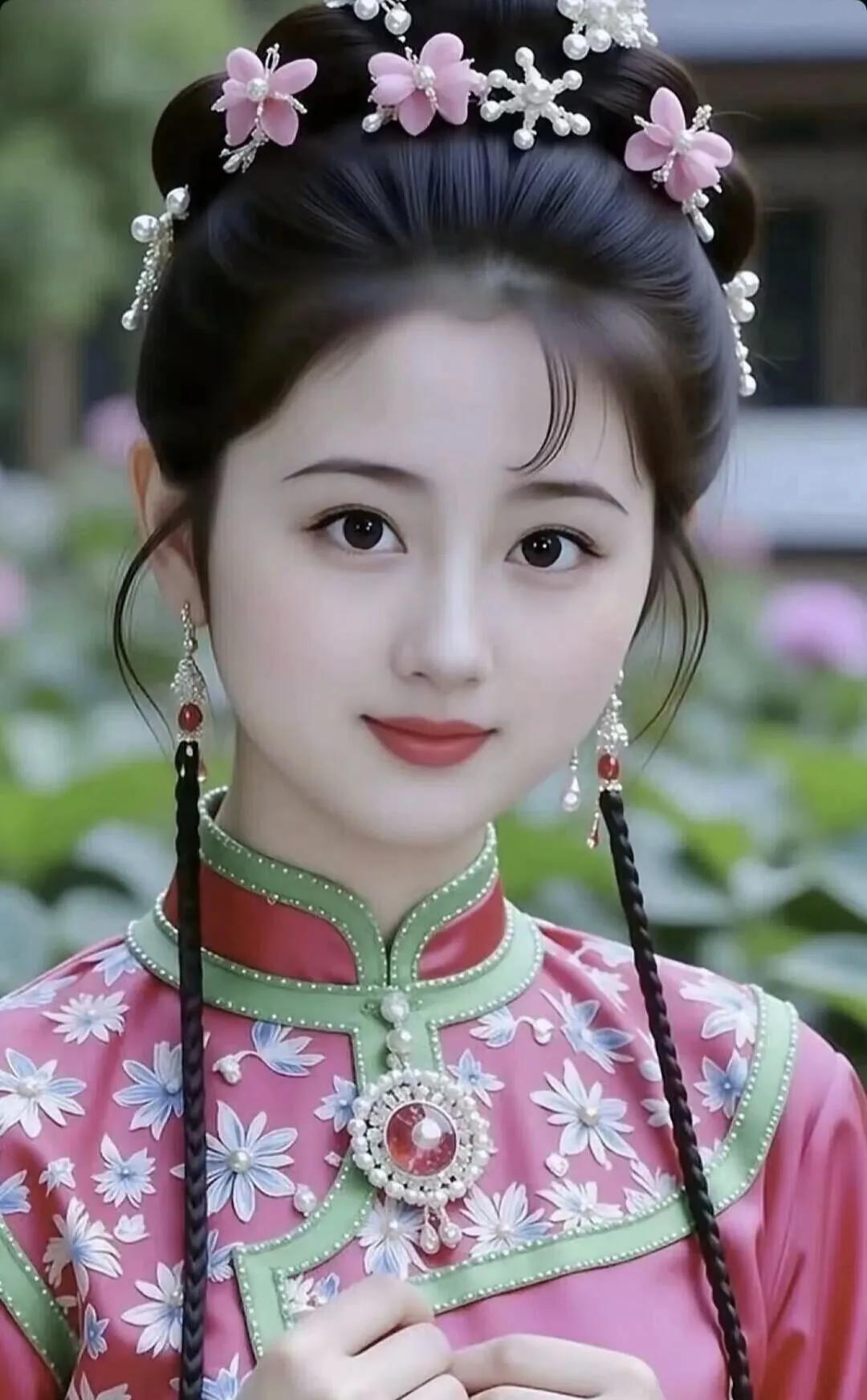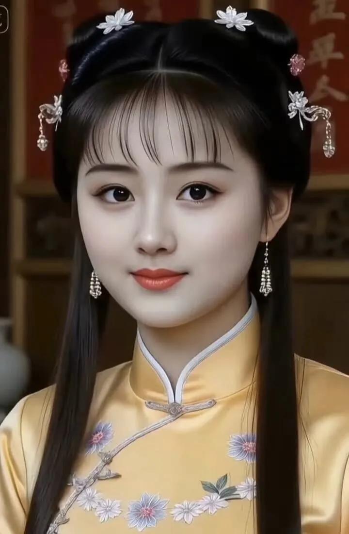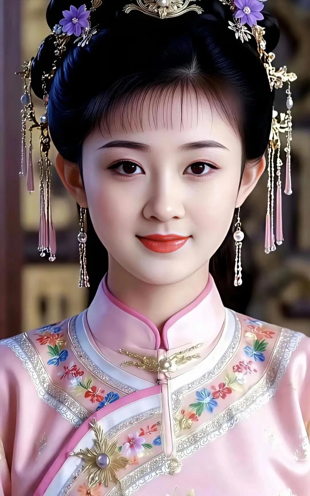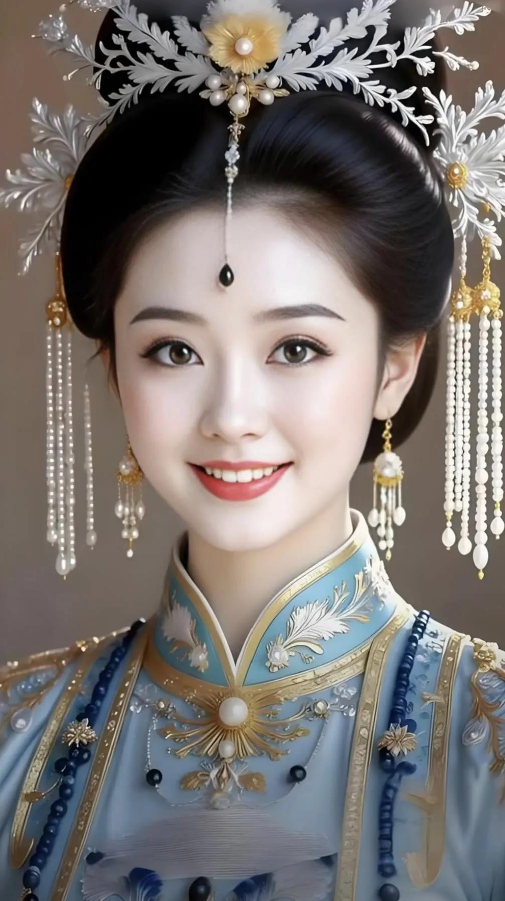 古风美女,笑靥如花,轻纱飘逸,宛如画中人。张立启原创书画AI作品古仕女发髻服饰集