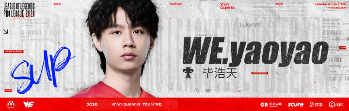 WE.yaoyao(毕浩天),西安曲江WE电子竞技俱乐部英雄联盟分部辅助选手。yaoyao选手是一名擅长开团硬辅的辅助选手,同时对非常规辅助也有一定熟练度,能根据队伍需要灵活搭配,他的加入能为队伍带来更多可能性。