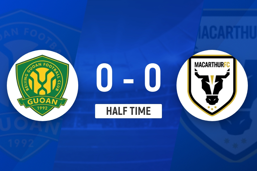 半场战罢,国安暂0-0麦克阿瑟FC。