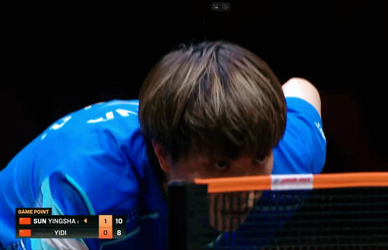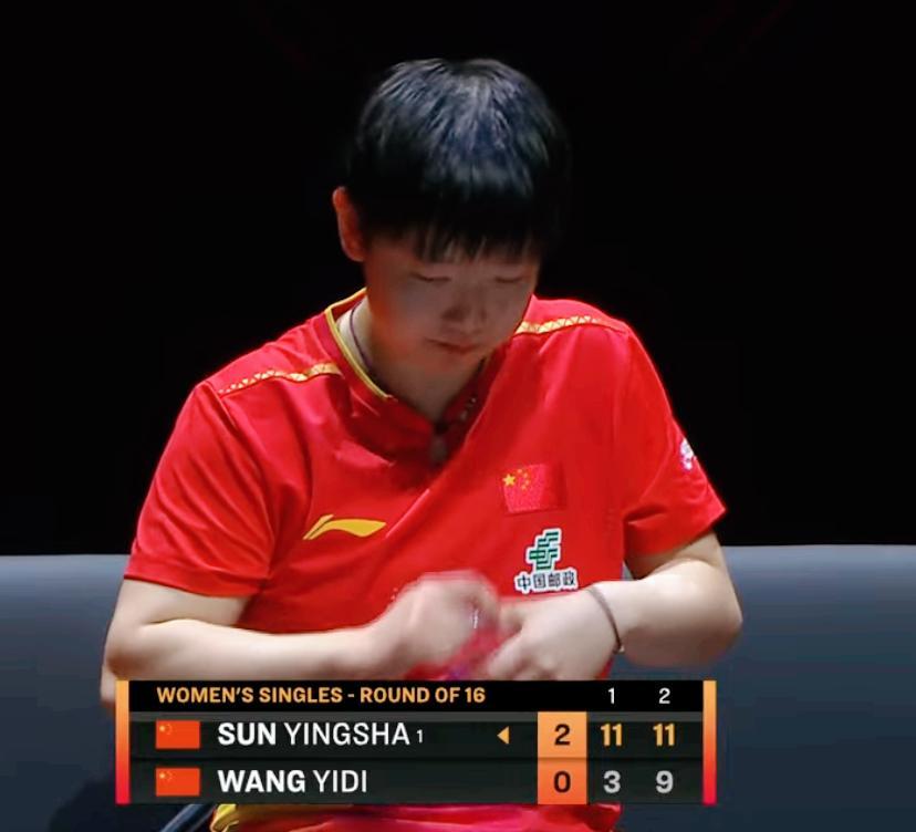 大迪估计要委屈哭了, 莎莎,你一点情面也不讲吗? 上周我还为你挡球呢, 今天第一局你就打我11:3 第二局 我追到9:10了, 马上看到希望了, 你这一大板子呼下来, 又将我希望破灭了, 9:11又输了一局。 你在这样, 就不给你挡球了, 哼!
