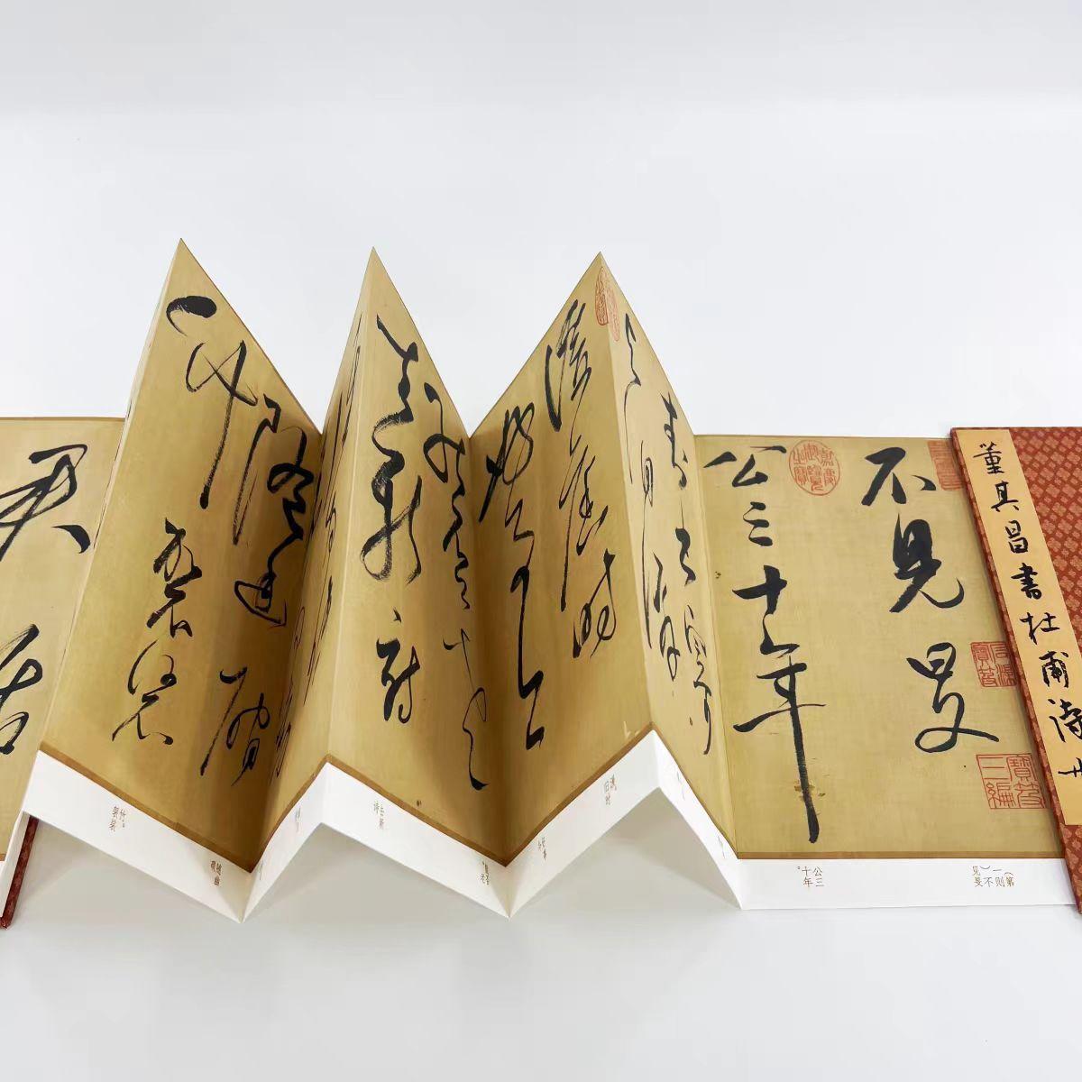 董其昌用一生功力写的书法,这字美到了骨子里,康熙赞叹:天下无敌! 自宋朝之后,随着真迹失传,正统的古人笔法,极少有人参透,自其至今的800年来,唯有2人最得古法精髓,一个是“元书盟主”赵孟頫,另一位则是明朝的“淡墨宰相”董其昌。 后世普遍认为,赵孟頫的水平高过董其昌,因其出身宋朝宗师,见过宫内藏品,眼界上面,要略胜一筹,不过董其昌曾在项元汴的府内,任职馆师,也见过名帖和晋唐真迹,眼界并不算狭隘。 而且董其昌独创“生秀淡墨”之法,着墨清淡,笔势迟涩,相比赵孟頫的醇熟感,其字古朴疏旷,绝去甜俗,没有“赵字”过多的柔媚感,笔笔凝寒淡远,出尘脱俗,还原魏晋的虚和意韵,境界高深。 他曾自夸:“子昂之熟,又不如吾有秀润之气。惟不能多书,以此让吴兴一筹”,何三畏也说:“天真烂漫,结构森然,往往有书不尽笔,笔不尽意者,龙蛇云物,飞动腕指间,此书家最上乘也。” 董其昌书法的自然烂漫,古法尽备,势态也明朗,非常适合临摹,特别是晚年时期,用尽一生功力写的《草书杜甫诗册》,美到了骨子里,此作内容是杜甫的三首诗歌,采用大草抄写。 诗词分别是《因许八奉寄江宁旻上人》《闻官军收河南河北》《七月一日题终明府水楼》,据专家推测,应是写给友人的,使用珍贵绢布,字字精心,中锋运笔,侧锋或尖锋衔接,字体刚柔尽备。 线条遒劲飞动、畅意通达,墨色和意态,随着情感和诗词内容,而发生变化,时而浓厚饱满,时而迟涩虚灵,既有俊逸清雅之风,还给人苍劲拙质的天然意趣,深化质感,强烈的对比效果,也突出动势和艺术性。 无愧于康熙痴迷“董字”,认为他的水平天下无敌,夸赞曰:“华亭董其昌书法,天姿迥异。其高秀圆润之致,流行于楮墨间,非诸家所能及也”,自宋朝之后,写到这种境界的寥寥无几。 尤其此帖,将其独特风格、气魄,展现的淋漓尽致,近500年无人能超越,可时常临摹,加强对于用笔的理解,让字体开阔自如,写出畅达、潇洒之风,日后衔接晋唐法帖,也会更加顺利。 而今,我们对董其昌《草书杜甫诗册》,进行1:1超高清复刻,采用博物馆级别,12色微喷复刻工艺,与原作毫无二致,此品乃是手工经折装,装裱精细,便于翻折、临摹和查找。 全卷加入现代字注释,帮助初学者识读,字体十分高清,市面罕见,独此一家,比普通印刷品更加还原、细腻,所有细节处理,全都一览无余,见此品如见原作,若您喜欢可以点击下方商品链接一观。 董其昌草书杜甫诗册 台博藏高清原大微喷复刻手工经折装毛笔字帖