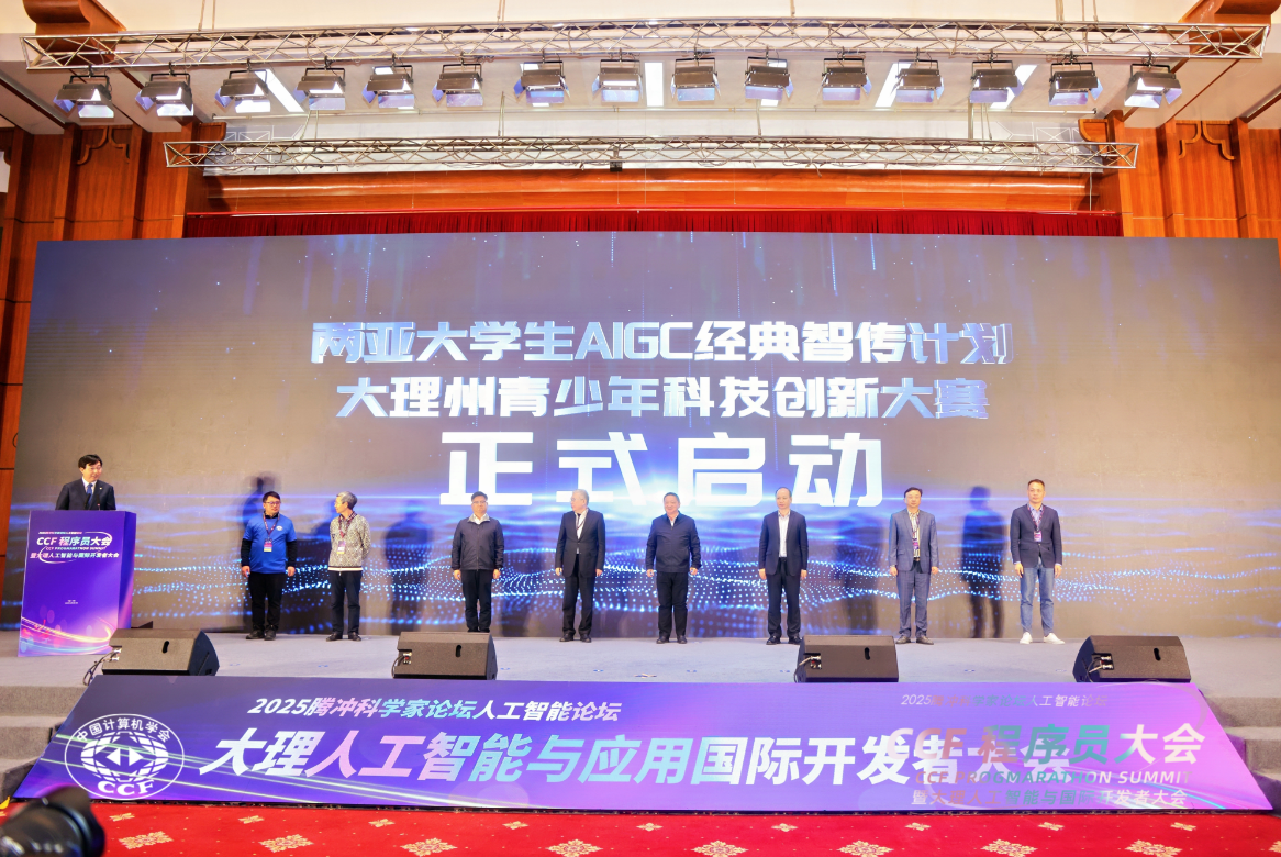 12月5日上午,2025腾冲科学家论坛人工智能论坛大理人工智能与应用国际开发者大会在大理国际会议中心开幕,行业专家、国内外学者、企业技术代表、AI开发者和数字游民等齐聚一堂,聚焦AI前沿实践、工具创新应用、专业人才培养、国际技术协作等多个核心领域,共享数字技术新成果、共探行业发展新路径、共商数字产业新合作。作为聚焦青年创新的文化传播工程,“两亚经典智传大学生AIGC计划在会上隆重启动,中国工程院院士、国务院参事张平;大理州委书记杨国宗;大理州委副书记、州长陈真永、云南省人民政府副秘书长施友连、中国科学院计算技术研究院研究院石晶林;云南省影视产业发展促进会会长彭涌;5G创新应用研究院执行院长许春荣、中国计算机学会工程师文化SIG主席刘付强共同按下启动键,宣布启动仪式成功举行。