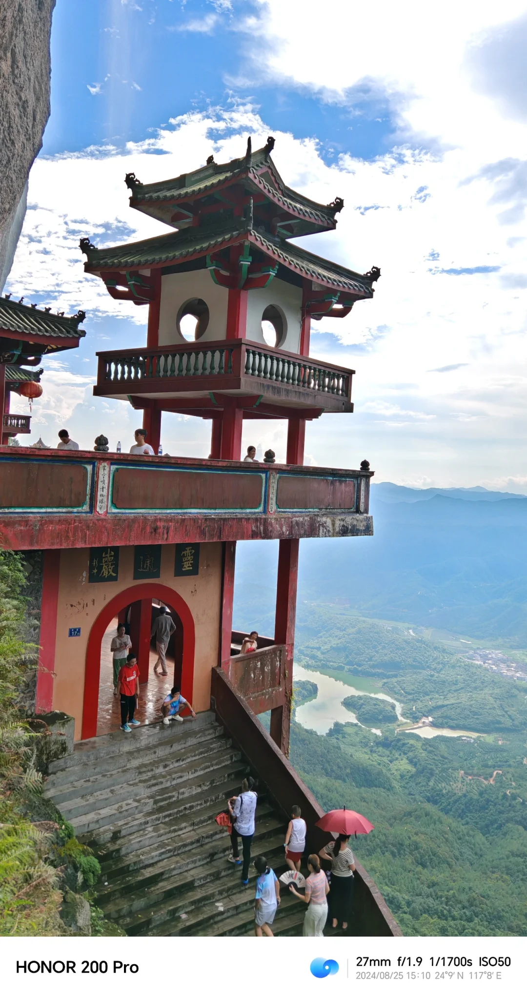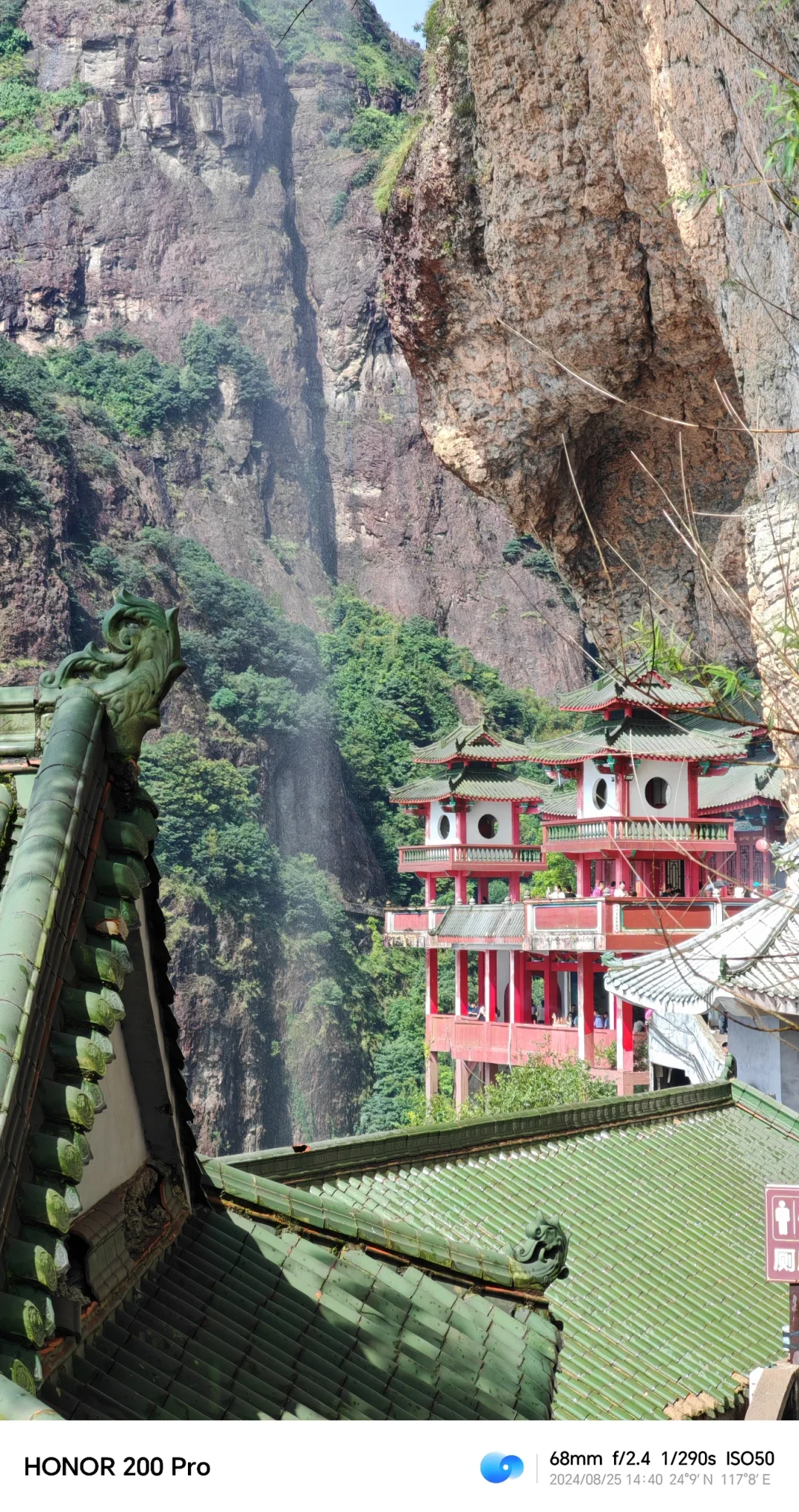 灵通山悬空寺,福建小黄山,早有耳闻,在厦门怎么着都得去一趟,去了发现风景比想象中的好了无数倍! 雨中登山,到顶转晴,刚好看到珠帘化雨、脚踏彩虹🌈的风景, 📷 Shot On 荣耀200 Pro,美景尽在手中,拍照就像图1那么拍,太有感觉了。