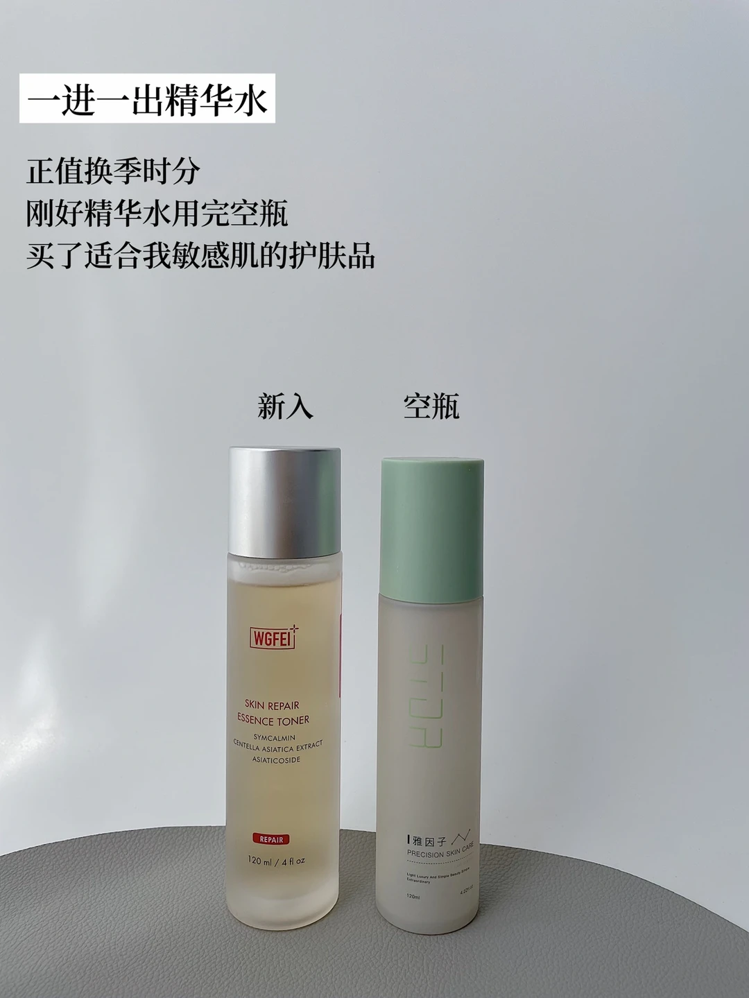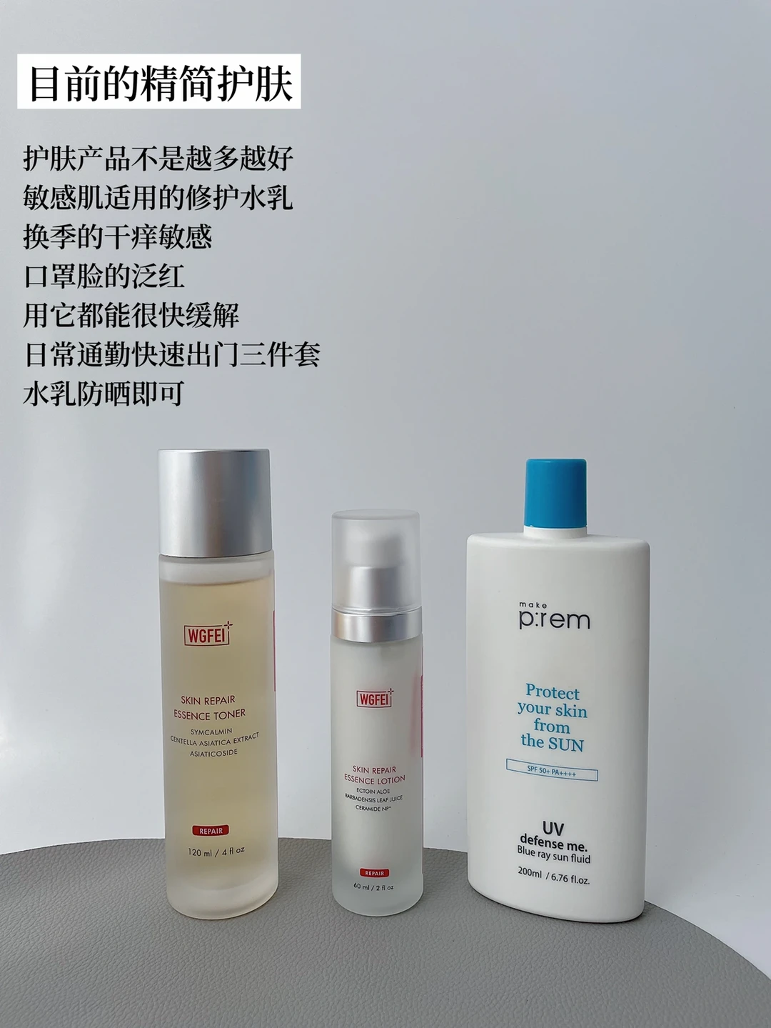 -精华水乳:秋天皮肤容易干燥,也刚好用完家里的爽肤水,入了新的水乳,直接涂抹就搞定晨间护肤了。对于敏感肌的我,它们好温和,泛红丝都慢慢褪去了。