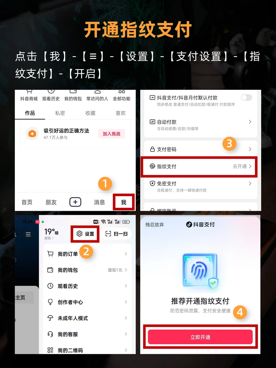 你知道支付的百万保障是免费的吗? 你知道钱包应该怎么设置才安全吗? 为了保障资金安全,这几个支付安全设置一定要做好,可惜很多人都不知道!!😤 1⃣️ 开通金额隐私保护 2⃣️ 查询名下交易 3⃣️ 开通指纹支付 4⃣️看清安全提醒 5⃣️ 学习安全课堂 对了,如果你还不知道如何开通支付的,打开,点击【我】-【≡】-【我的钱包】-【支付】,按提示操作即可开通[自拍R][自拍R] 好了,今天就分享到这里,大家赶紧查下你的支付设置吧,守住我们的钱包!!🙌🏻 跟我一起念:💰来,💰来,💰从四面八方来!