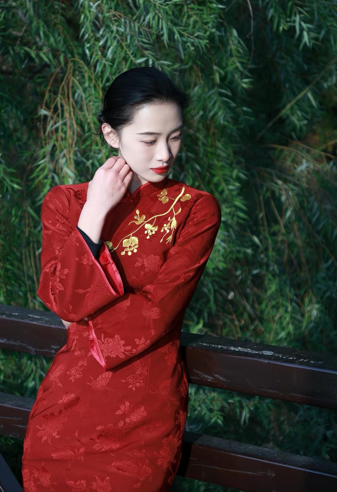 红色旗袍 摄影