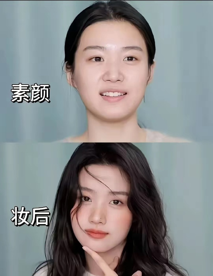 卢昱晓素颜和妆后对比感觉她妆后特别好看,自带氛围感