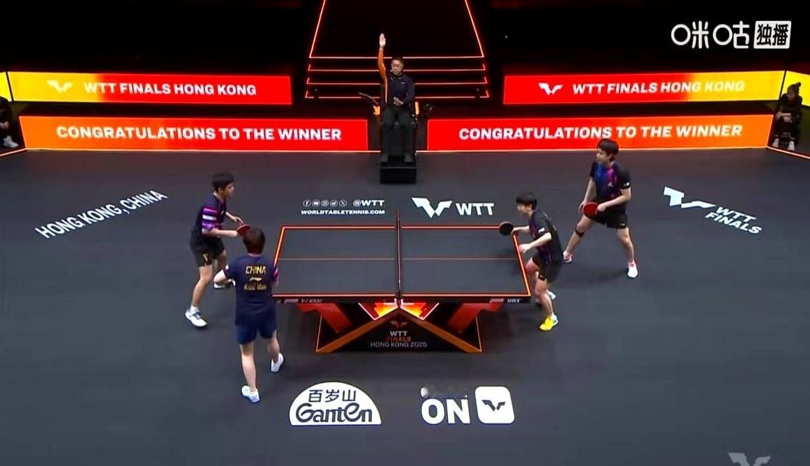 裁判改判,王楚钦孙颖莎都笑了。 2023年WTT新加坡大满贯混双1/4决赛,莎头组合对阵栋曼组合。 打到第三局最后一球,出了个擦边争议,裁判看完回放直接改了判。 镜头给到王楚钦和孙颖莎,俩人一点不急,就笑着在那等比分调整,这心态真是松弛。 王楚钦还扭头调侃林诗栋:“现在直播呢,得打完!” 结果莎莎一个滚网,11-6拿下这局,四个人击掌的时候大家都笑,都笑得不行。 这哪是比赛,简直是国乒团建现场,熟人局的氛围感拉满了。 王楚钦打混双时特别活跃,跟单打时的疲惫样完全不同。 跟私交很好的林诗栋隔网相对,加上默契搭档孙颖莎在身边,整个人的状态都被激活了。 这气氛,绝了简直。 这场打完,孙颖莎和蒯曼晚上还有女单比赛要拼,一个对王艺迪,一个对早田希娜。 场上是朋友,场下也是战友,这种良性竞争和队友情谊,真的挺好。 这种比赛就是好看,既有顶尖技术对抗,又有藏不住的欢乐,这才是乒乓球的魅力嘛。