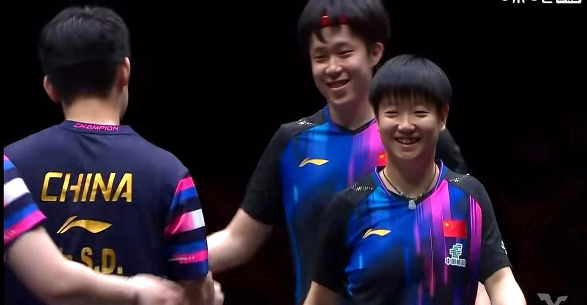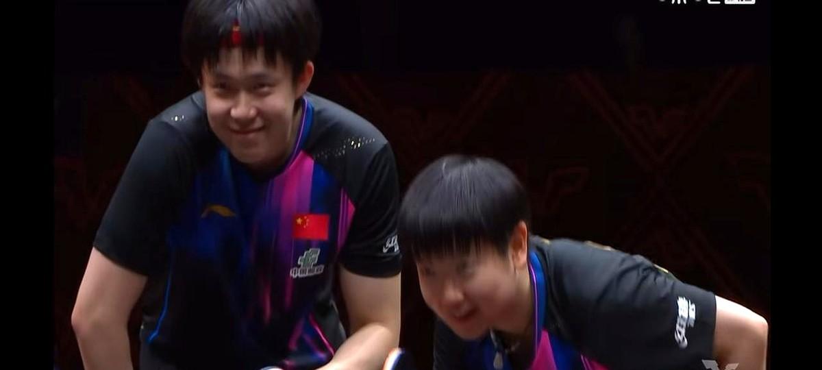 裁判改判,王楚钦孙颖莎都笑了。 2023年WTT新加坡大满贯混双1/4决赛,莎