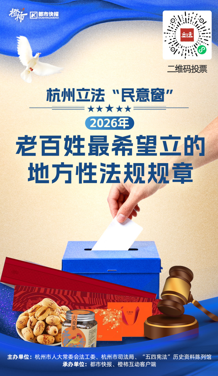 微信搜索小程序“杭州市人大常委会基层立法联系点”或进入橙柿互动App找到“2026年老百姓最希望立的地方性法规规章”,即可进入投票通道。微博搜索话题#2026杭州立法投票#,在参与讨论的同时也能完成投票。