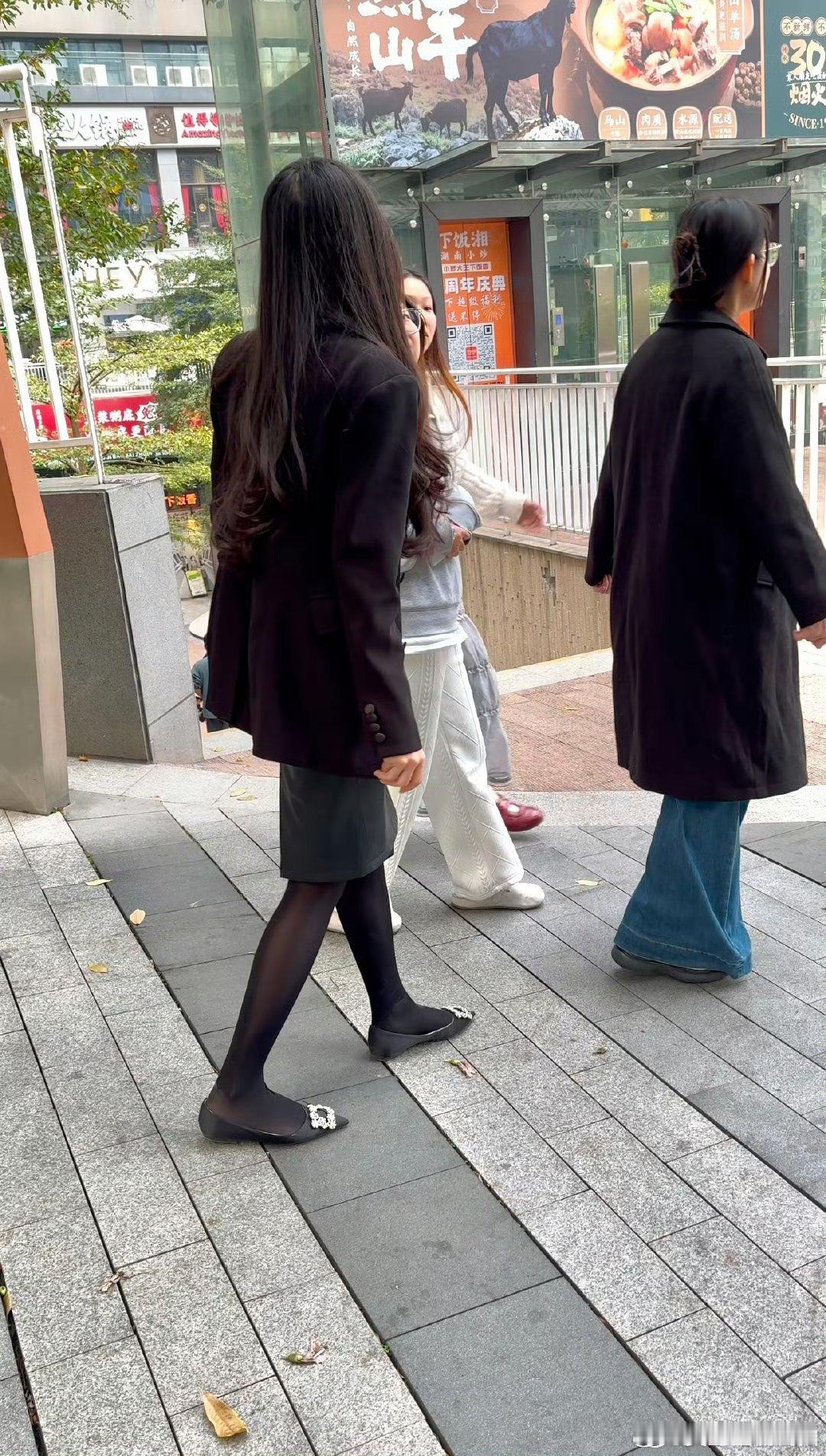 秋日漫步,落叶飘零,优雅长裙,唯美街拍。