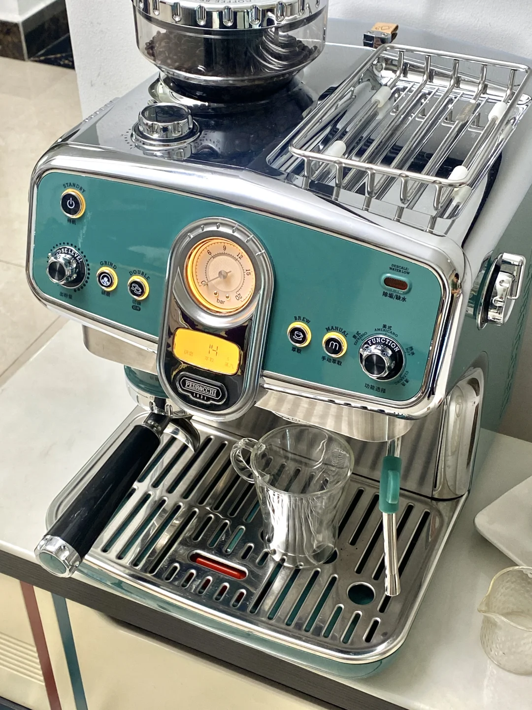 更重要的是实用性!打听了下,其他朋友大多送厨房小家电或鲜花,咖啡机大概率没人选,不怕撞款。而且我知道朋友是重度咖啡爱好者,每天得喝两三杯,送这个绝对戳中她心坎。最贴心的是,这台机器操作超简单,就算是咖啡小白也能轻松上手,有智能布粉压粉设计,不用担心手法不对,拉一下手柄就搞定,内部自动完成螺旋布粉+恒力压粉,出来的粉饼均匀又紧实。