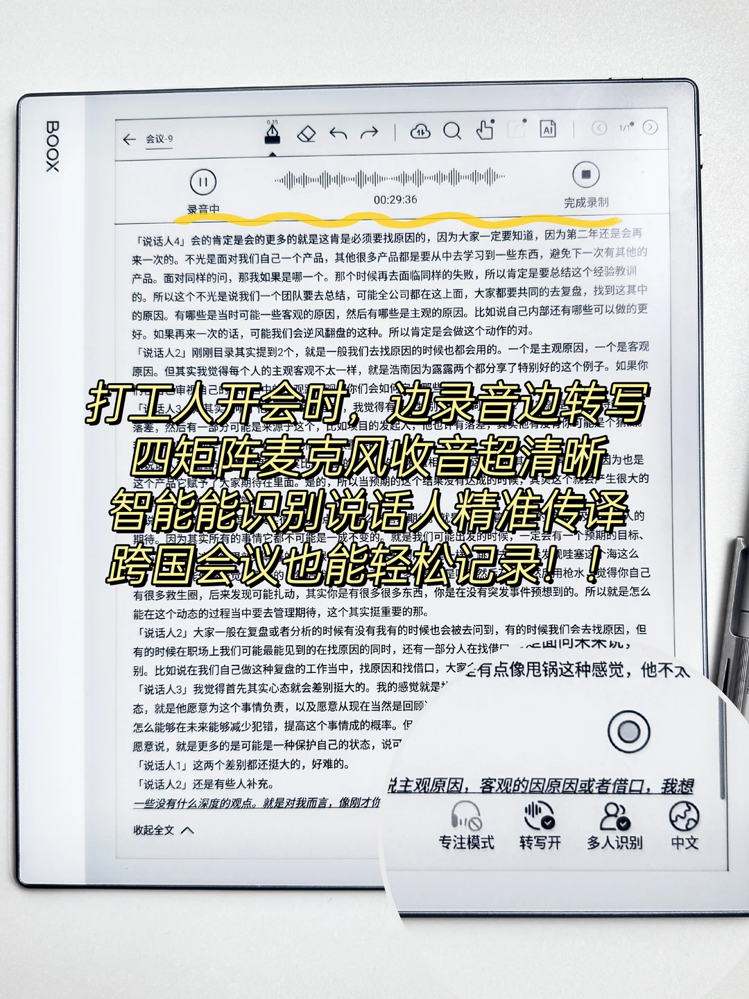 现在有了文石NoteX5S办公本,开会时边录音边转写(跨国会议也能转写哦!),同步记录重点信息,会议结束后, Al就能帮你一键整理出会议纪要🤙🤙🤙
