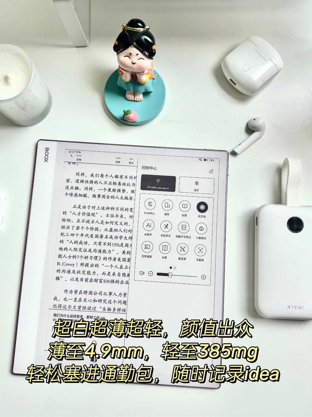 外观也是相当高级,轻至385g,薄至4.9mm,3D素皮工艺加极简雅白的外观,非常适合对生活有高要求或者颜控人群,拿在手里轻薄得像本杂志,塞进通勤包也完全不会鼓包和压肩。