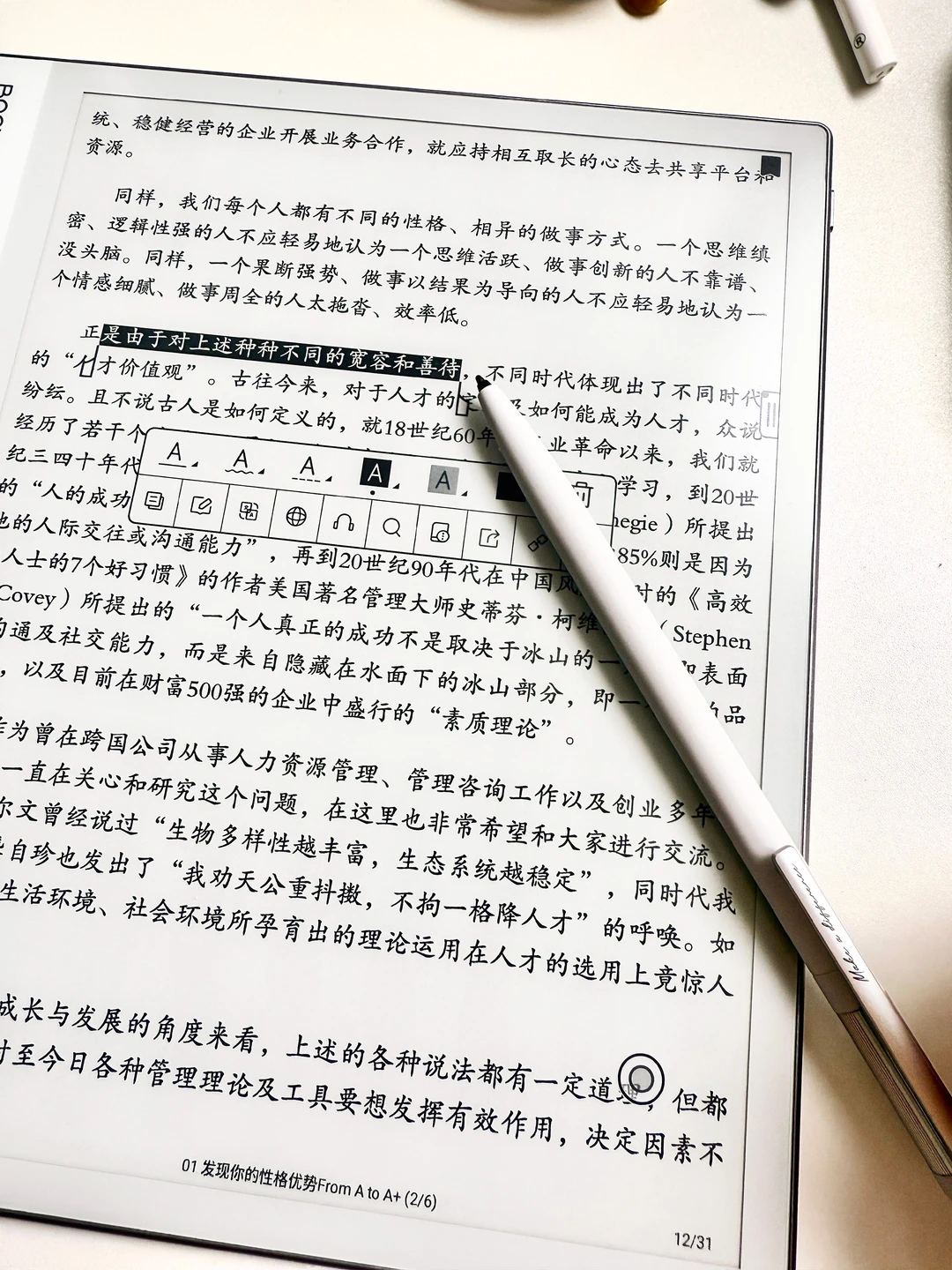 在书写体验上,文石NoteX5S办公本搭配了全新Pen3电磁笔🖊️,拥有超舒适的握笔质感,下笔“手写的沙沙沙”声,非常真实,就像真的在纸上手写一样。