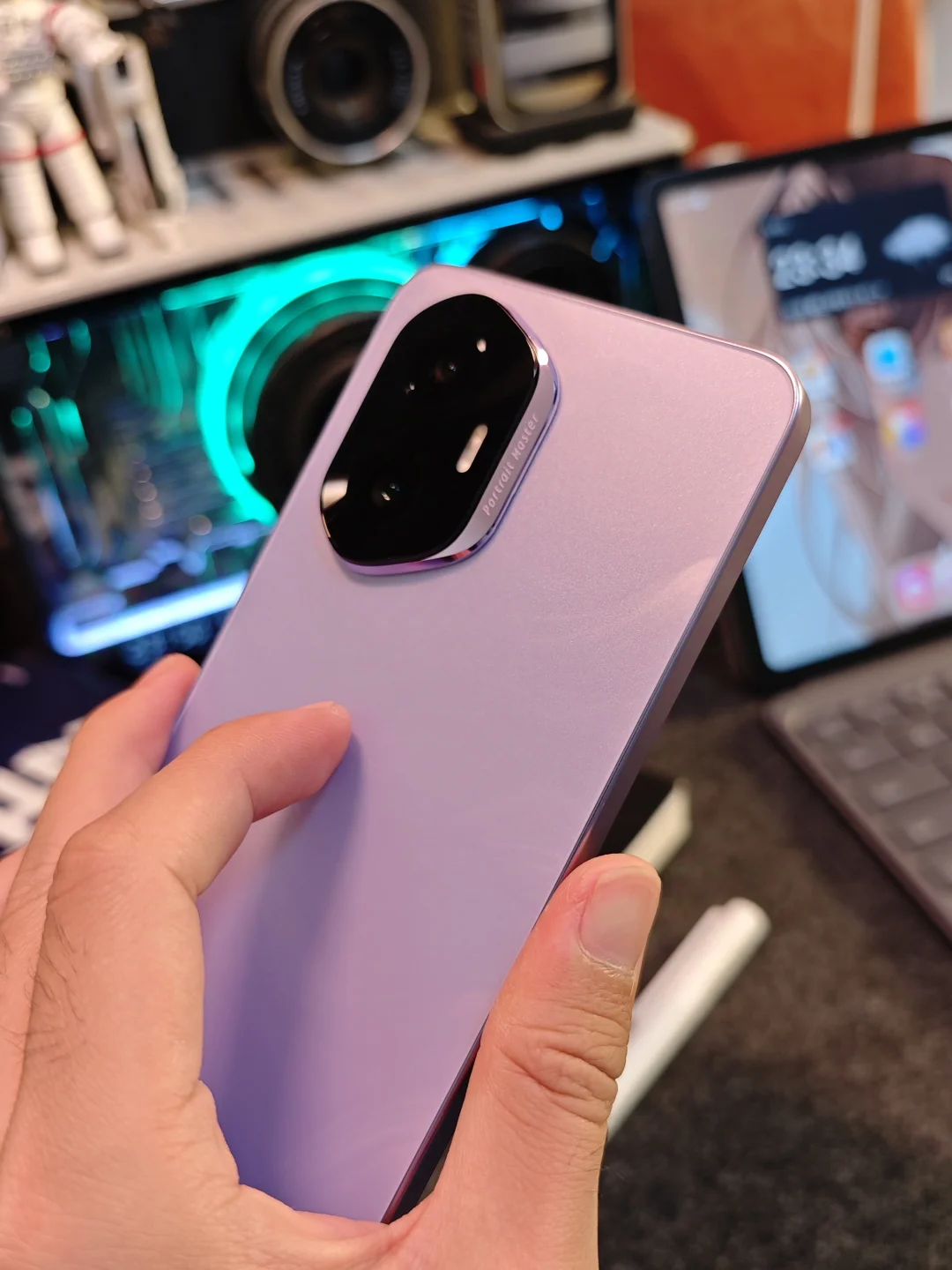 这才是荣耀300真机的样子,庐烟紫配色