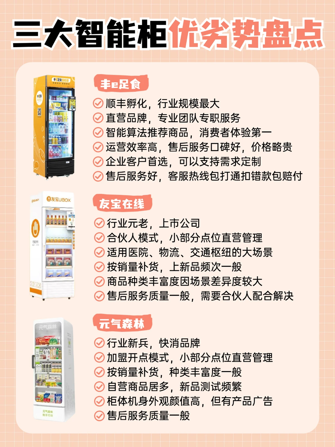 常见于机场、地铁等大型场所,直营限于交通枢纽等,对于小场景运营采取的是合伙人模式,所以优势在公共服务大场景,适合商品需求单一场景。