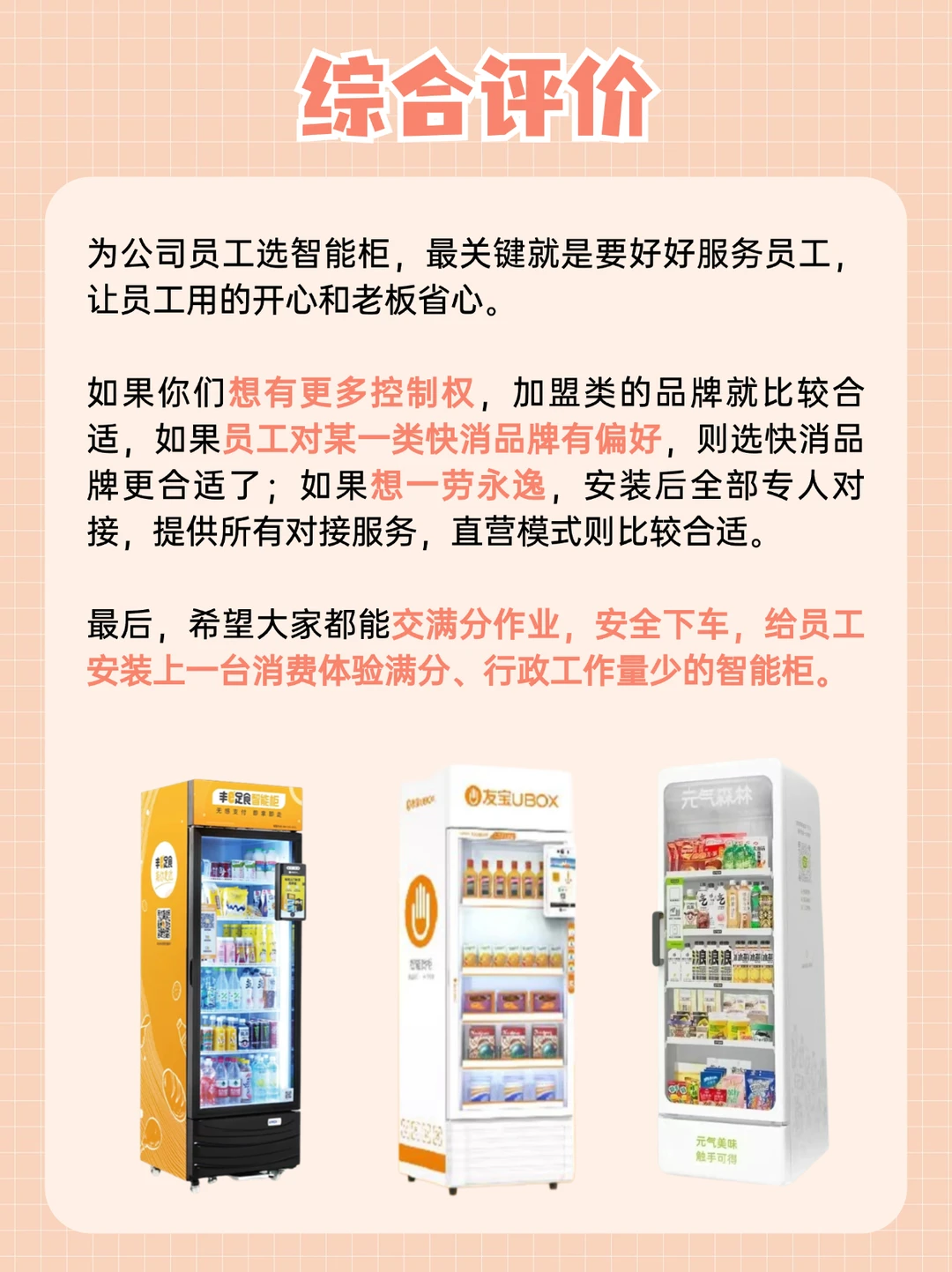 综上所述,帮公司选择无人零售智能柜时,首先要考虑自身场景特性,其次要考虑服务体验,省事省力省心很重要。也欢迎你讲讲你对零食售货机的体验和期待[派对R]