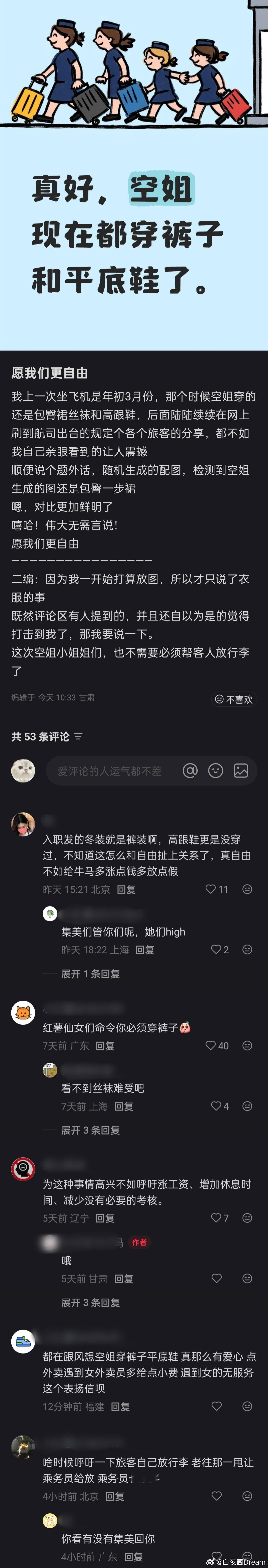 冬天到了,空姐现在都穿裤子和平底鞋了。