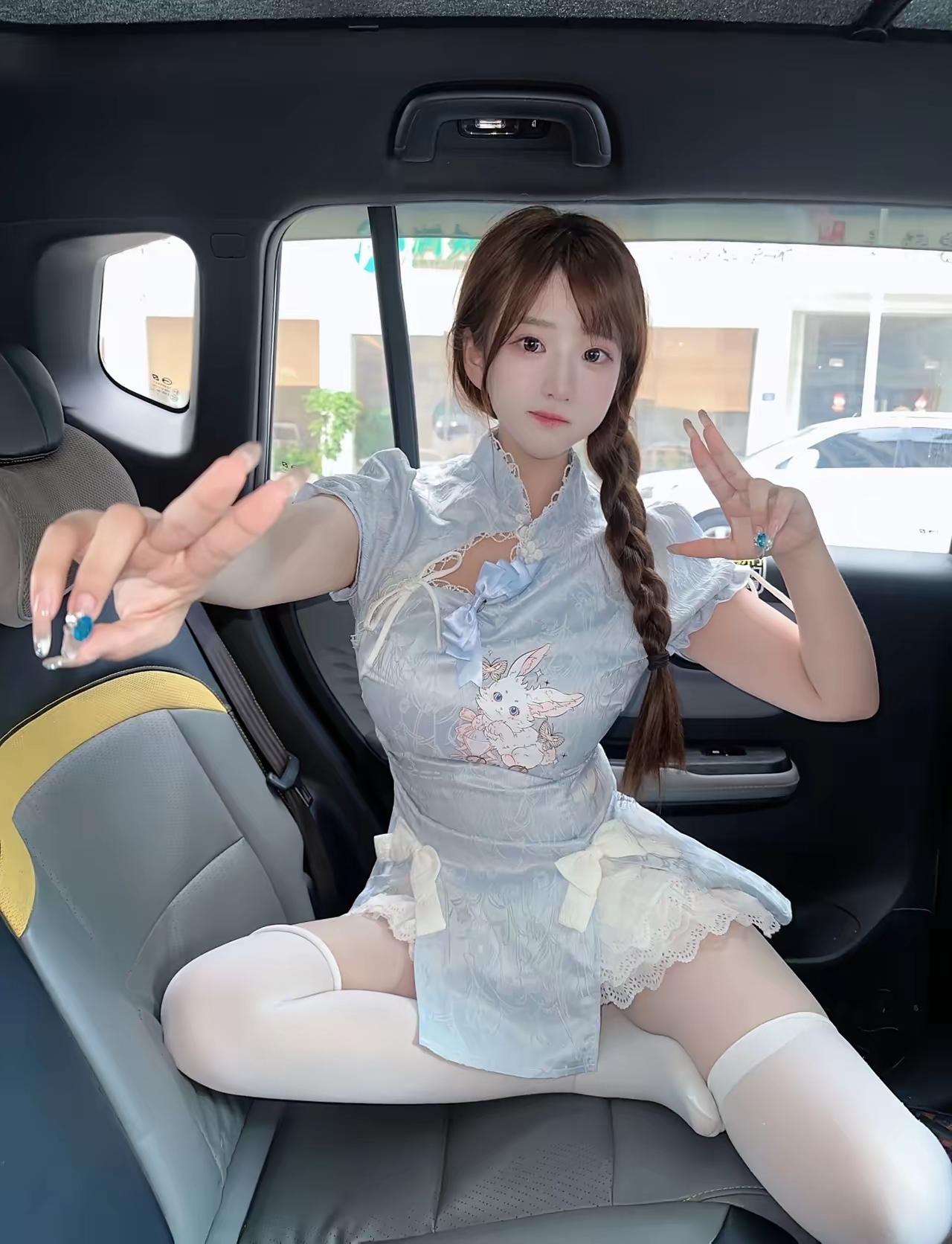 可爱兔女郎,车内俏皮自拍🐰💕白丝[话题]